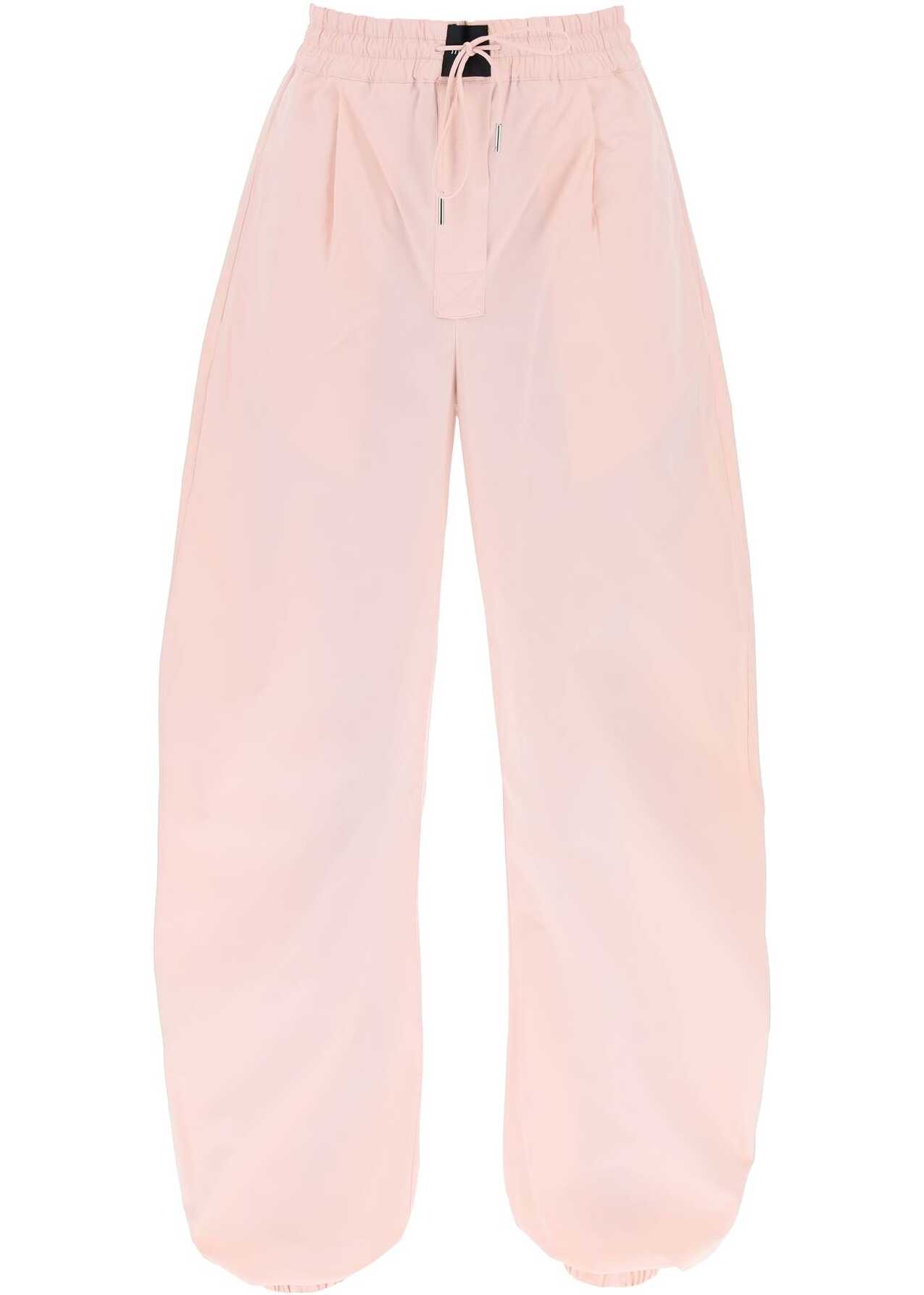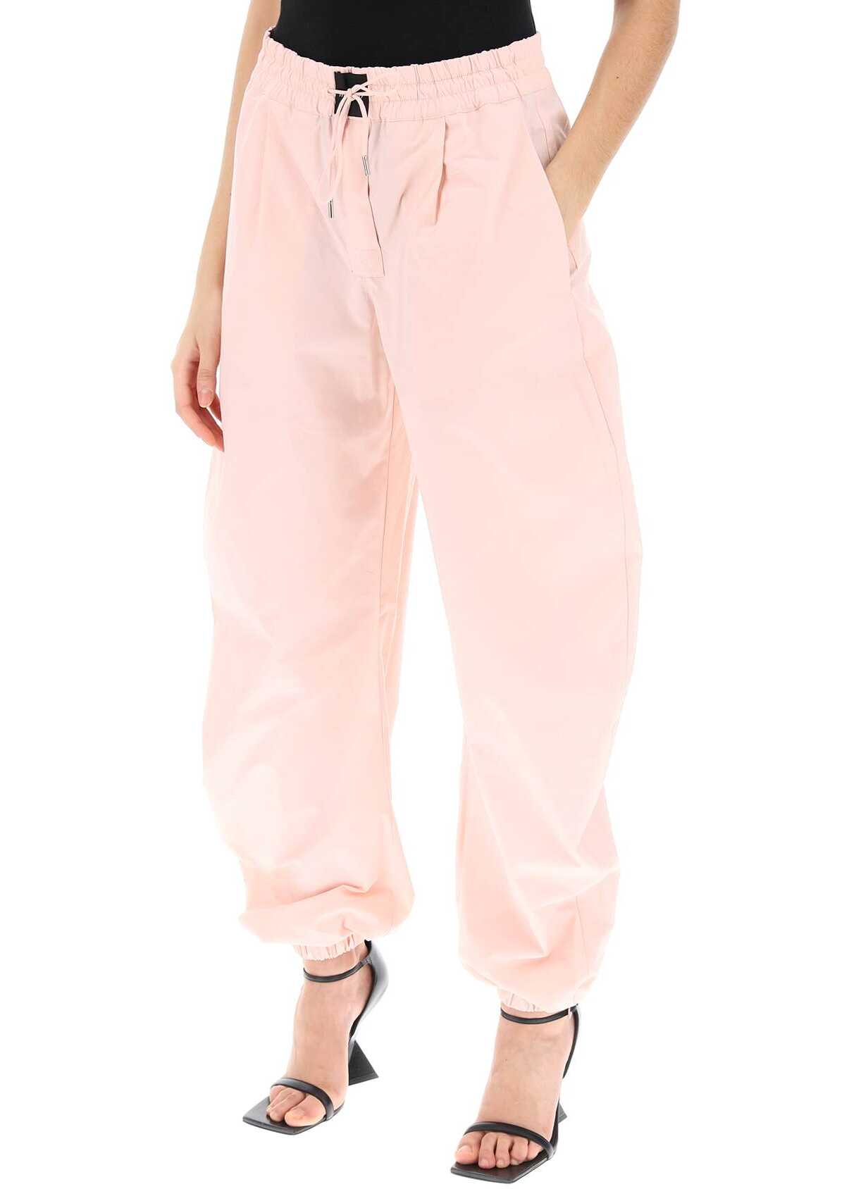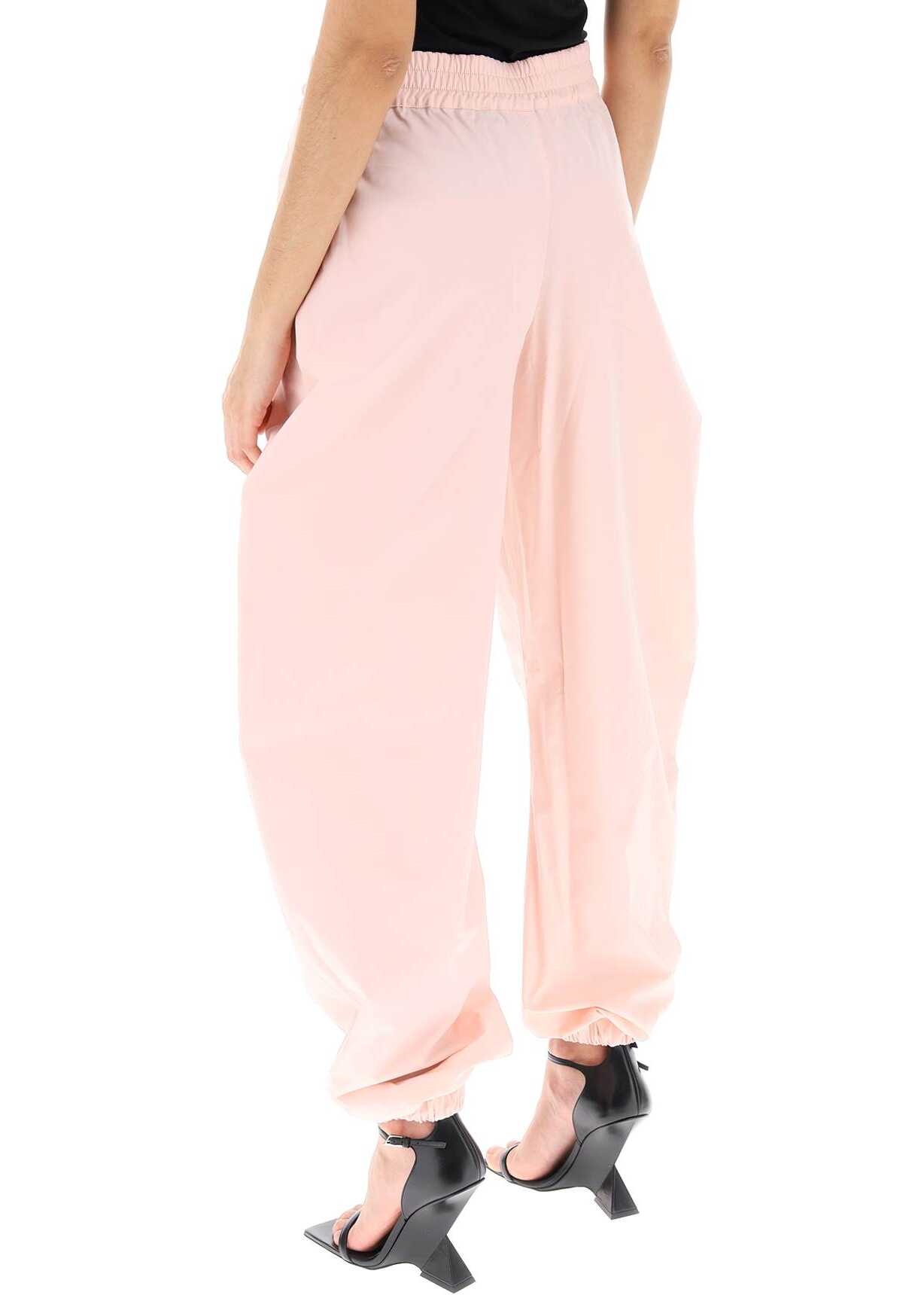 The Attico joggers crafted in pure cotton poplin. They feature elasticated waistband with drawstring and logo label on the front, mock fly, side slash pockets and hem with elasticated cuffs. Loose fit. The model is 177 cm tall and wears size IT 38.