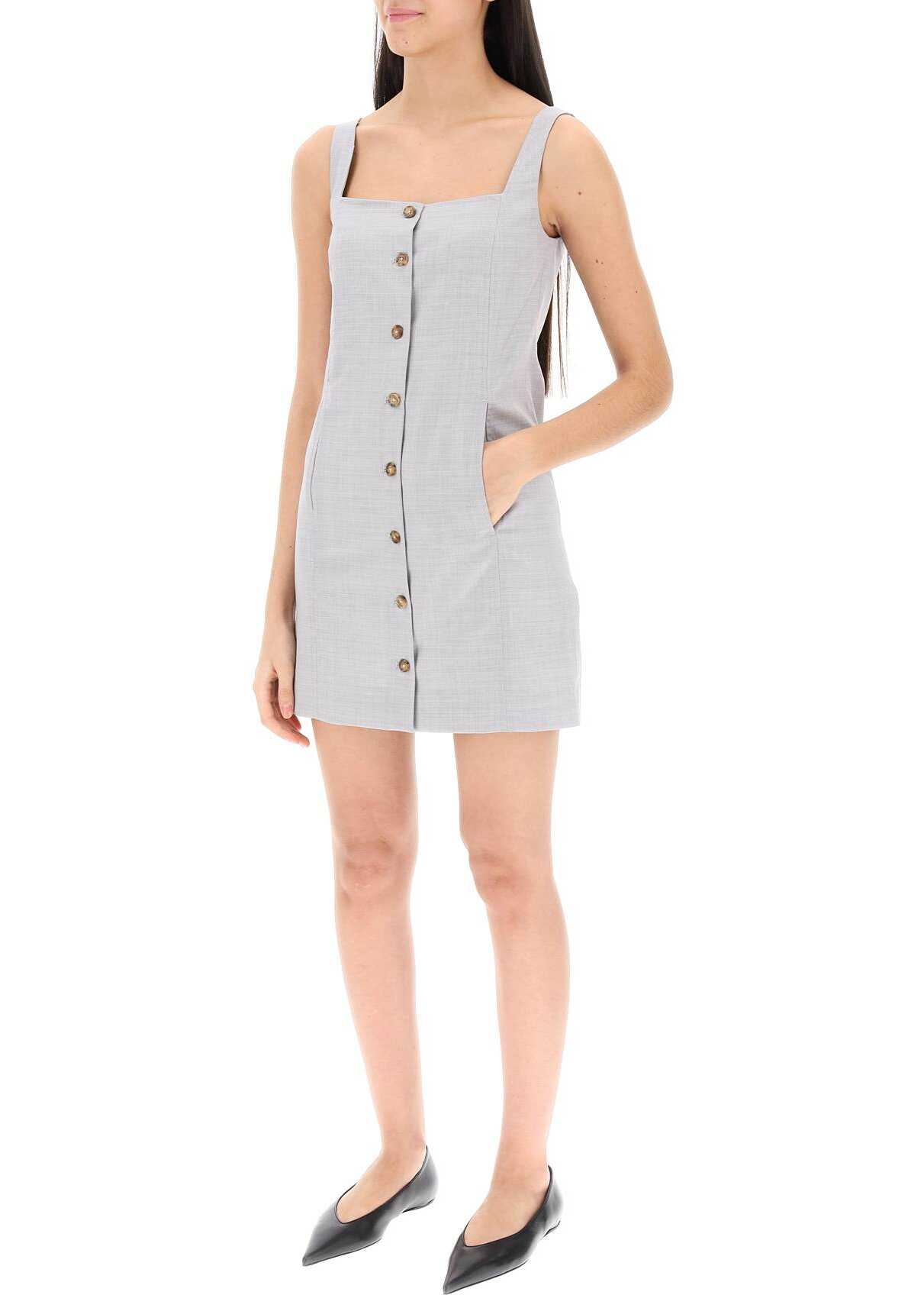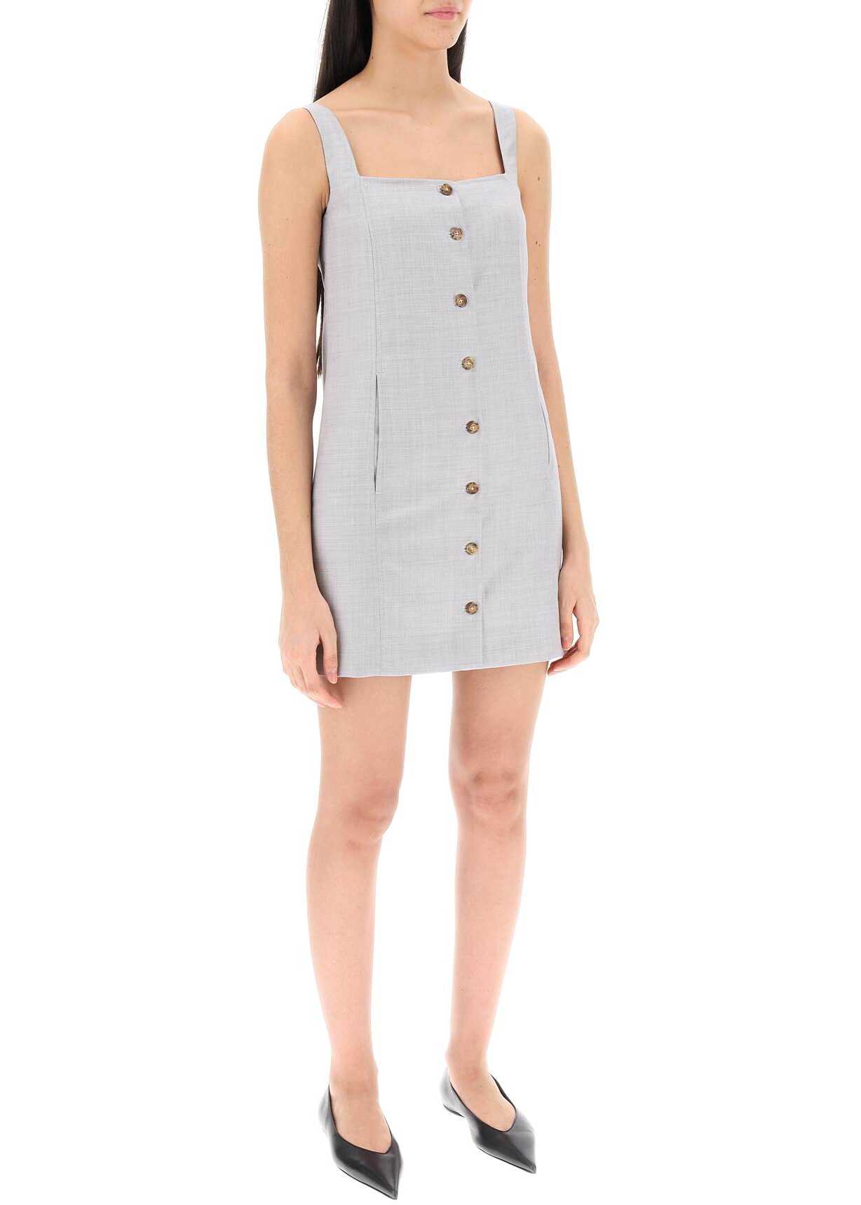 Mini pinafore dress by Loulou Studio crafted in melange-effect light wool twill, characterized by front button closure. It features squared neckline, inseam pockets and back adjustable strap with buttons. Straight silhouette with regular fit. The model is 177 cm tall and wears size XS.
