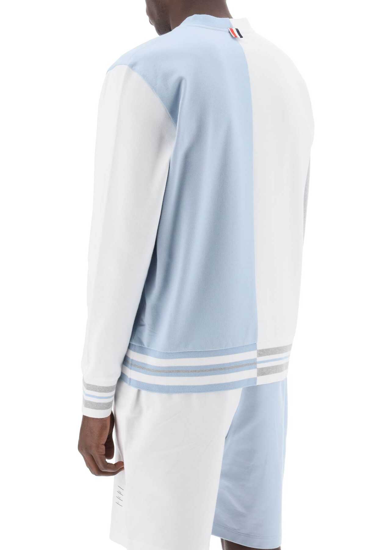 Thom Browne sweatshirt crafted in two-tone cotton french terry, detailed with tricolor grosgrain loop tab on the back and with Name Tag on the front. It features ribbed crew neck and uneven-striped cuffs and hem. Relaxed fit with dropped shoulders. The model is 187 cm tall and wears size 3 Thom Browne.