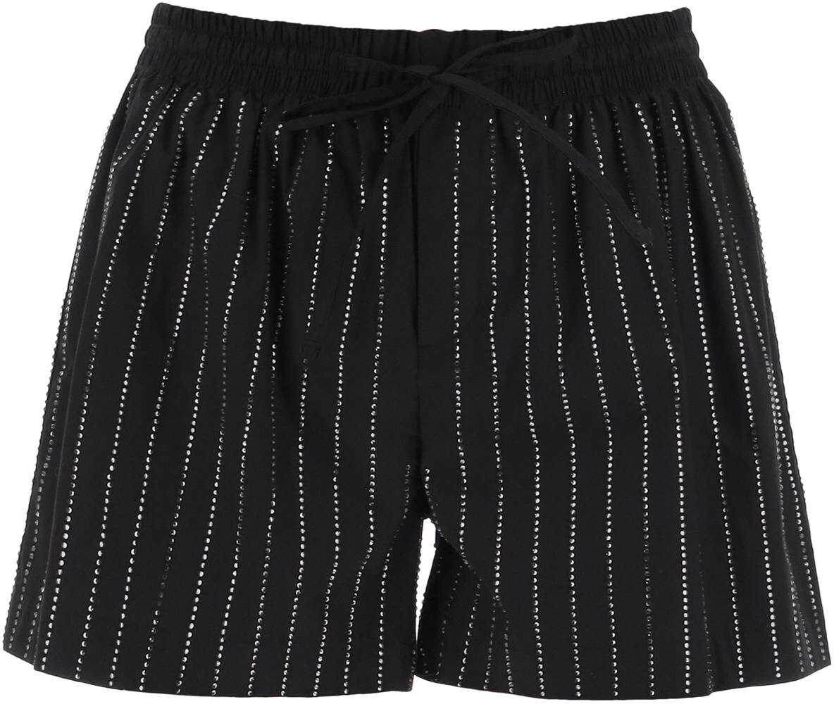 Giuseppe Di Morabito shorts crafted in stretch cotton poplin with rhinestone-studded striped pattern all over. They feature elasticated waistband with drawstring and they are characterized by a loose fit. The model is 177 cm tall and wears size IT 40.