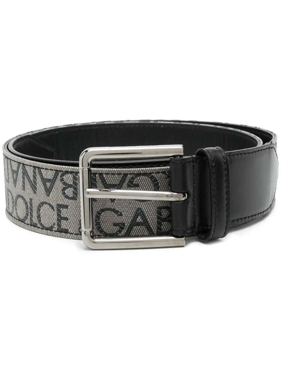 Belt with buckle with embroidered logo by DOLCE & GABBANA. Taupe color, cotton/leather, canvas, embroidered logo, buckle closure and punched holes.
