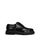 Black, calf leather, brushed finish, round toe, front closure with laces and rubber sole.