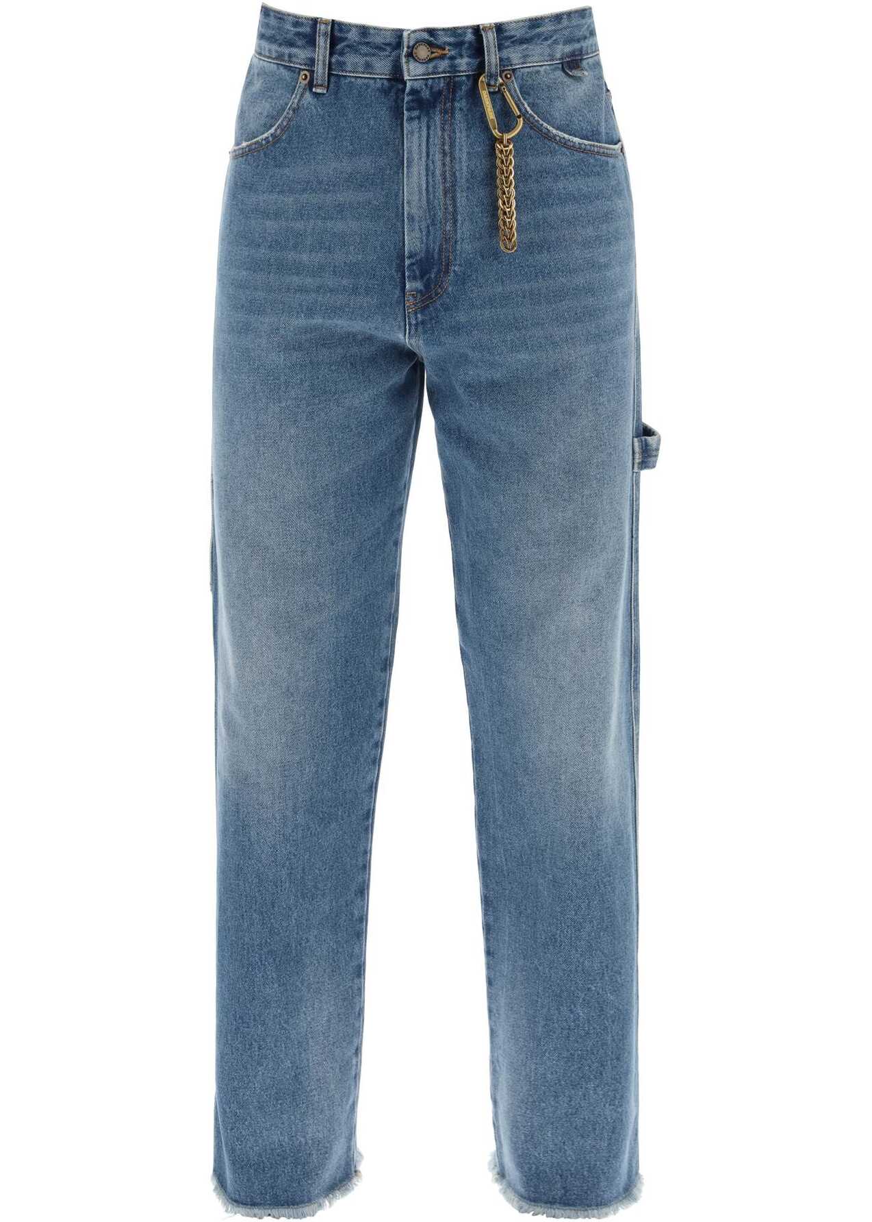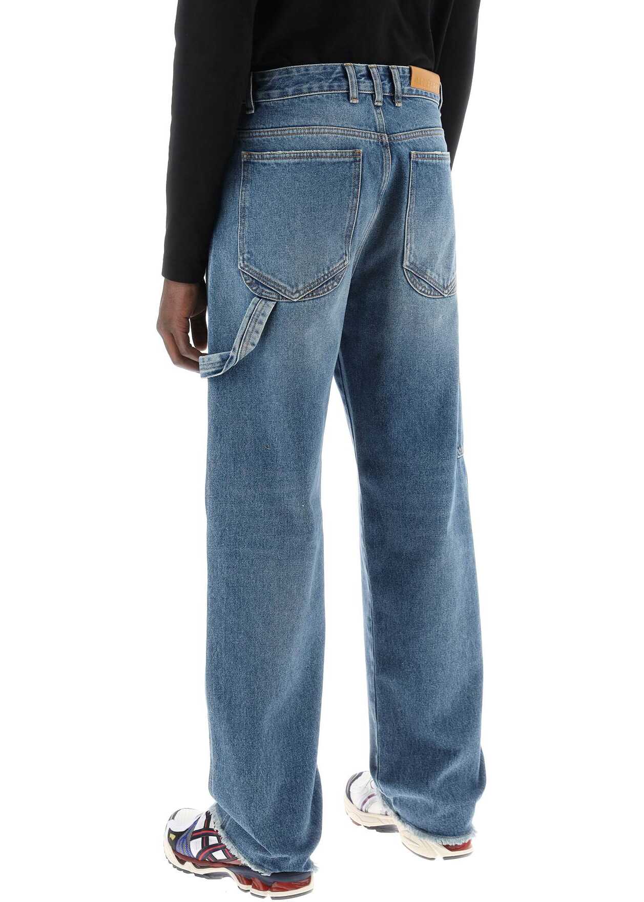 Workwear four-pocket jeans by DarkPark in cotton mid-wash denim. It features concealed zip-fly and logoed button closure, belt loops, hammer loop and a side utility pocket. Baggy fit. The model is 187 cm tall and wears a size 31.