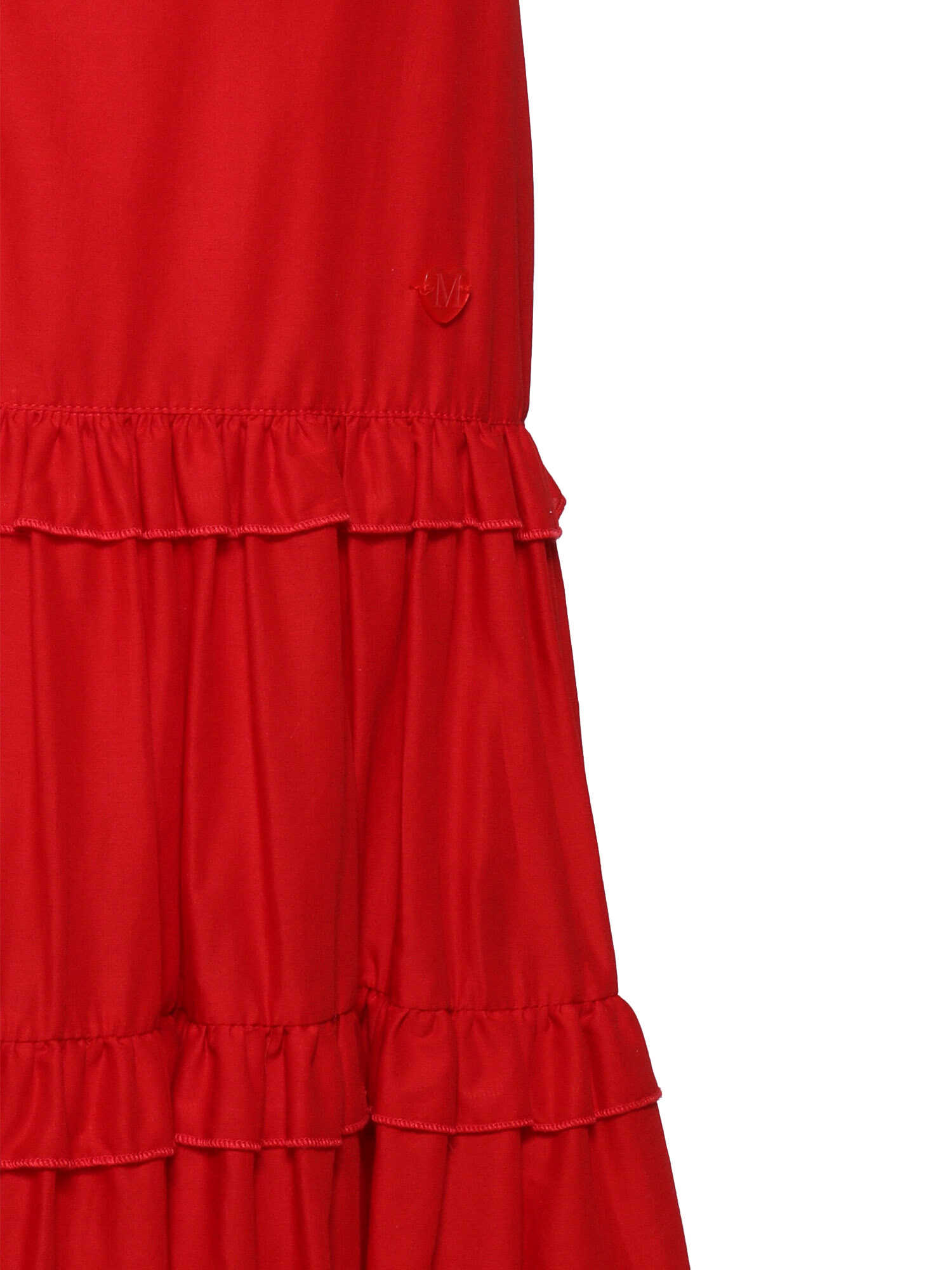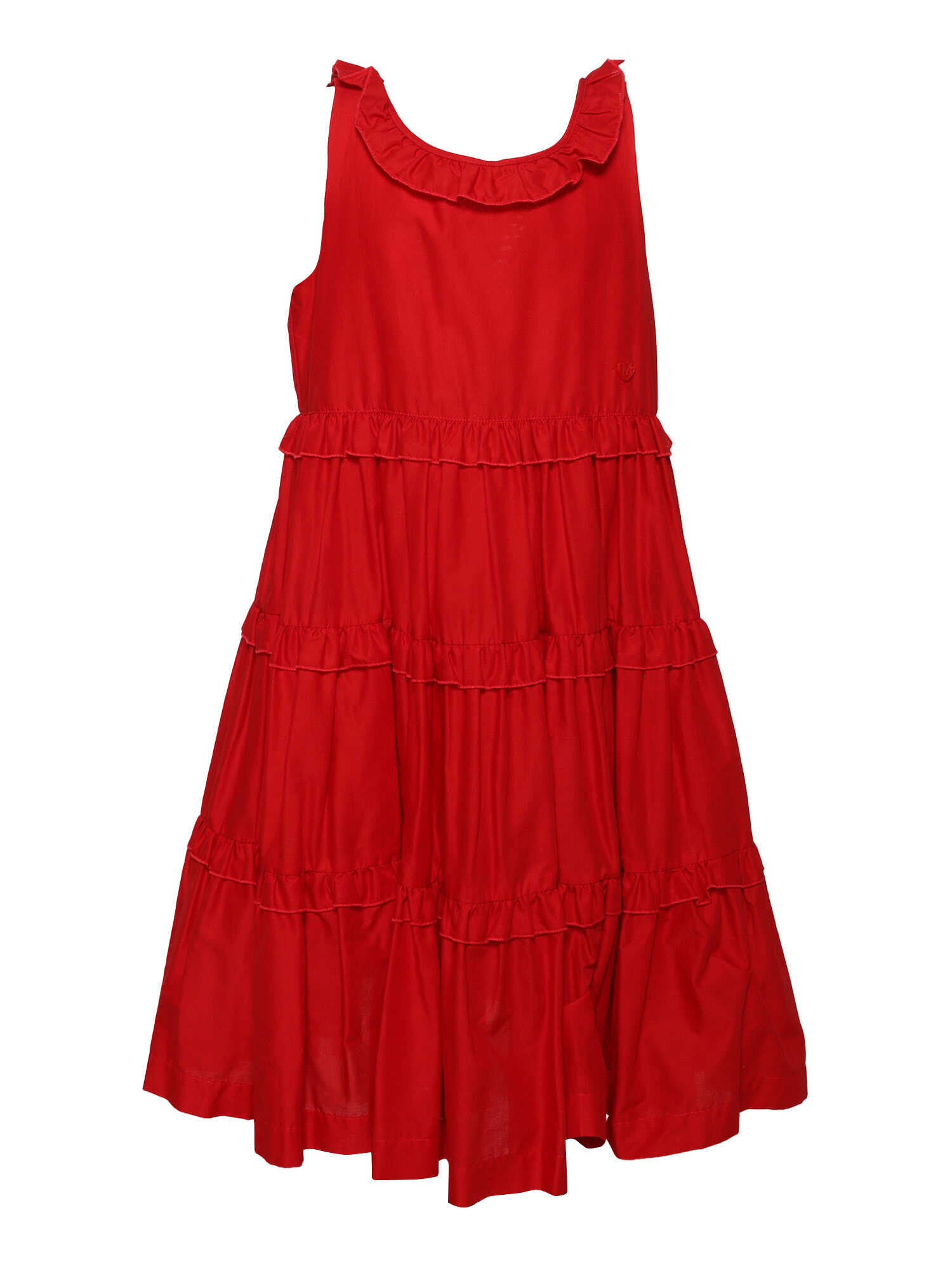 Women's flared flounce dress in cotton, sleeveless, with ruffled collar. Tone-on-tone embroidered heart logo.