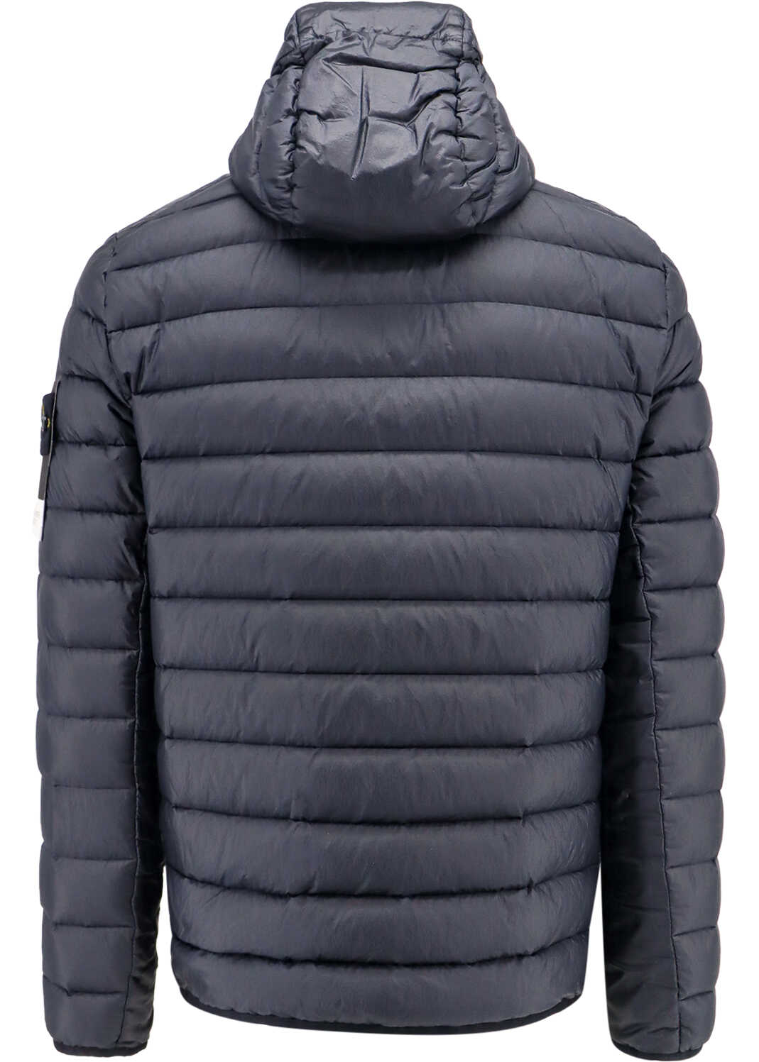 Padded and quilted nylon jacket with removable logo patch