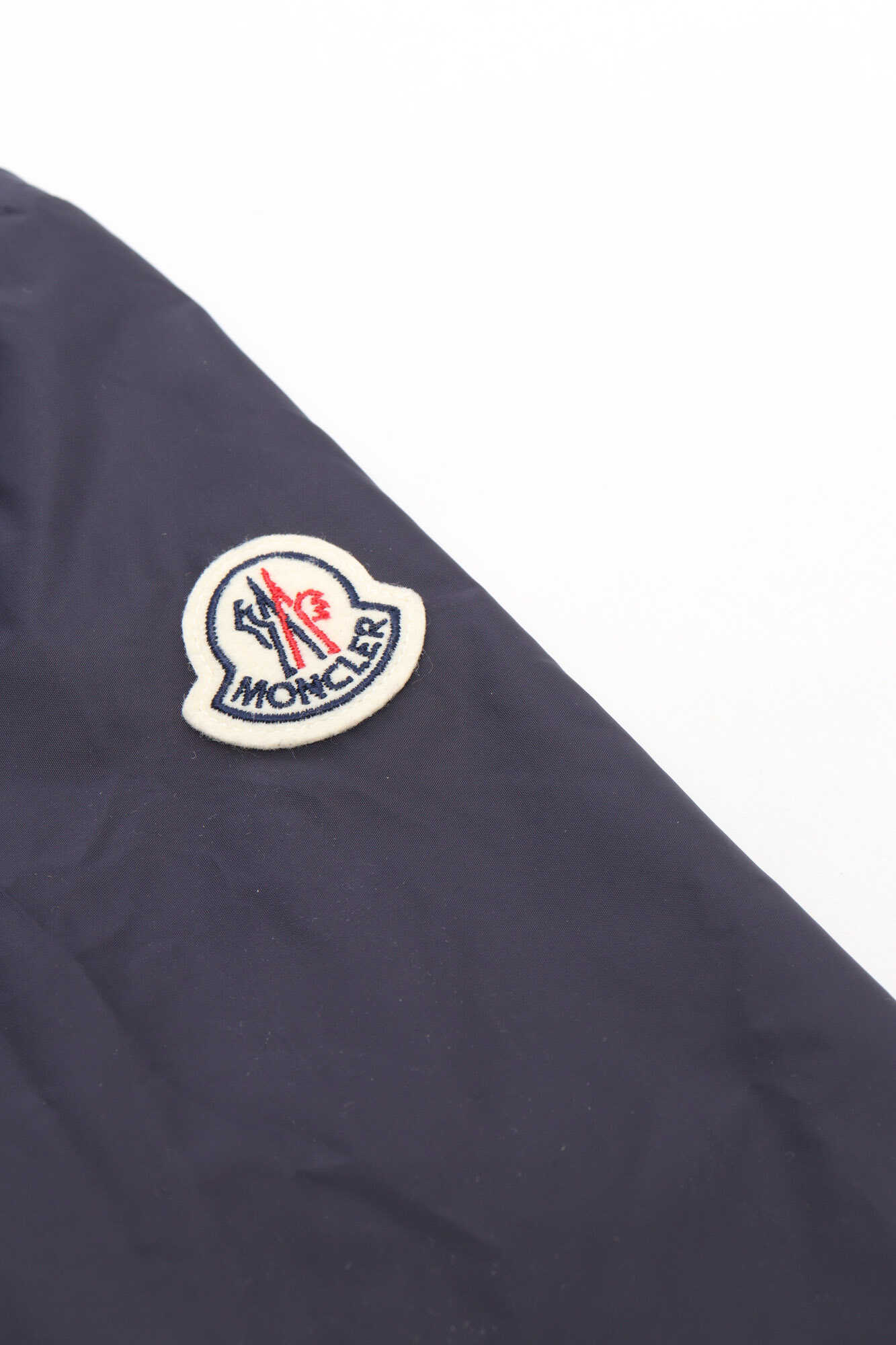 Blue Moncler Granduc jacket for children in recycled nylon with hood, 2 front pockets with automatic button, tricolor finishes.