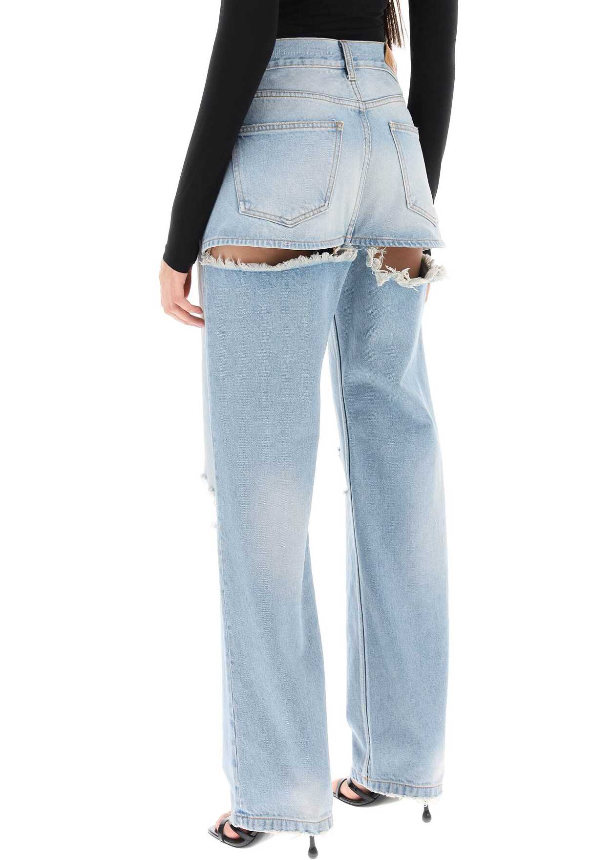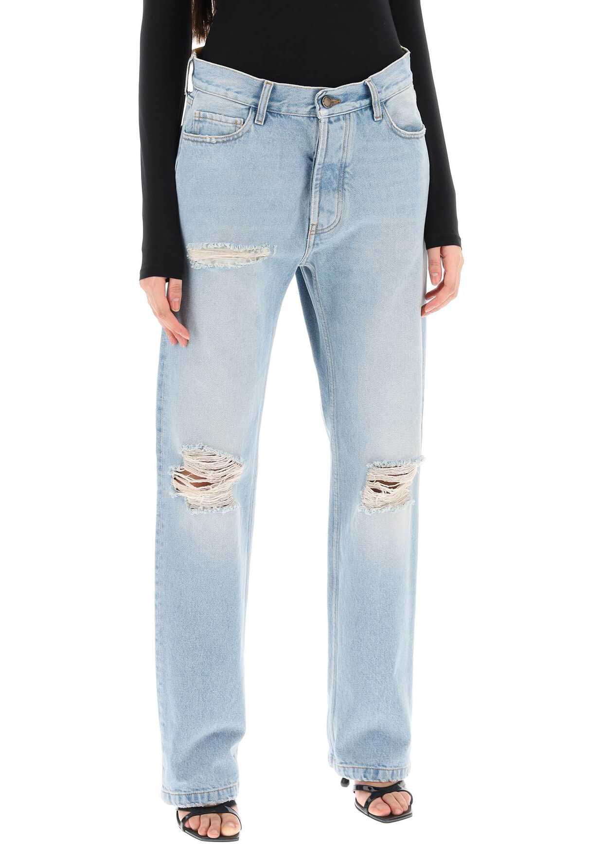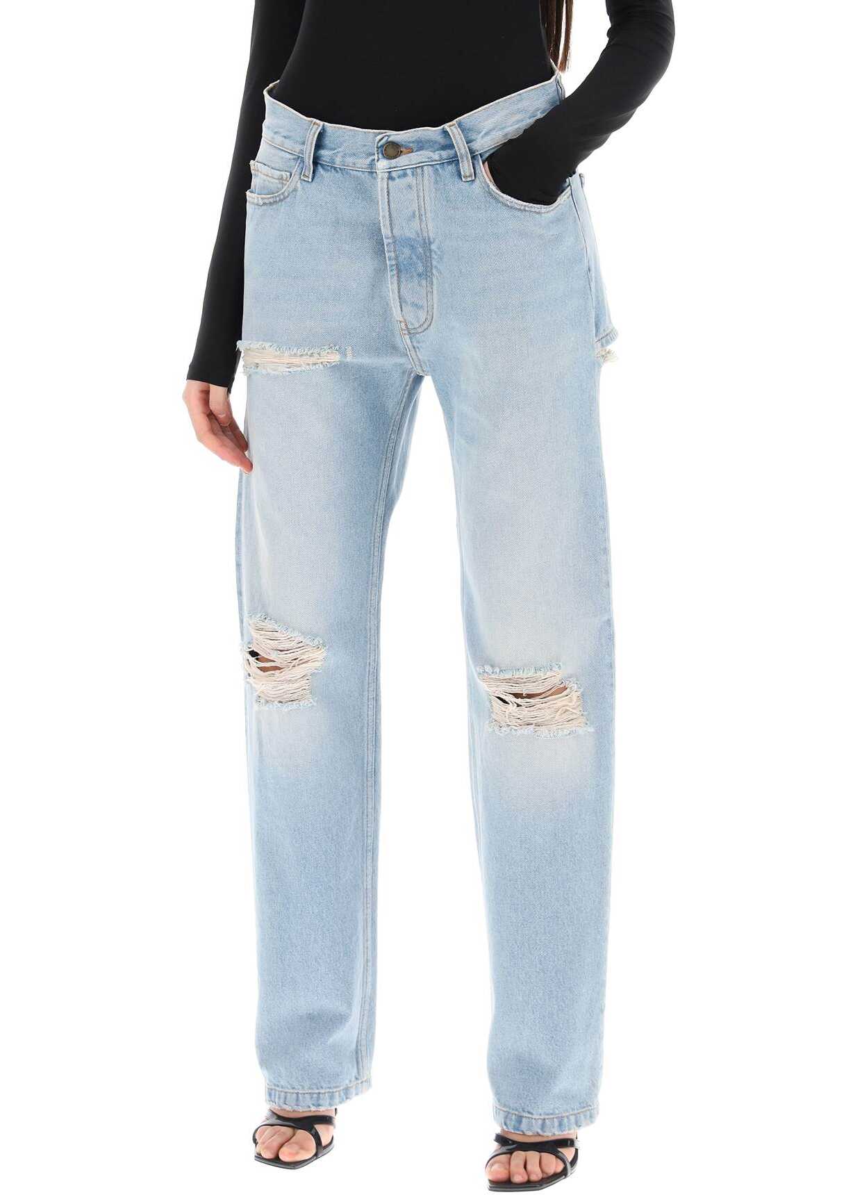 DARKPARK jeans crafted in light vintage-washed cotton denim characterized by rips and back cut outs. Five-pocket design with a regular straight cut, featuring button-fly closure, belt loops and logoed jacron on the back of the waist. The model is 177 cm tall and wears size 26.