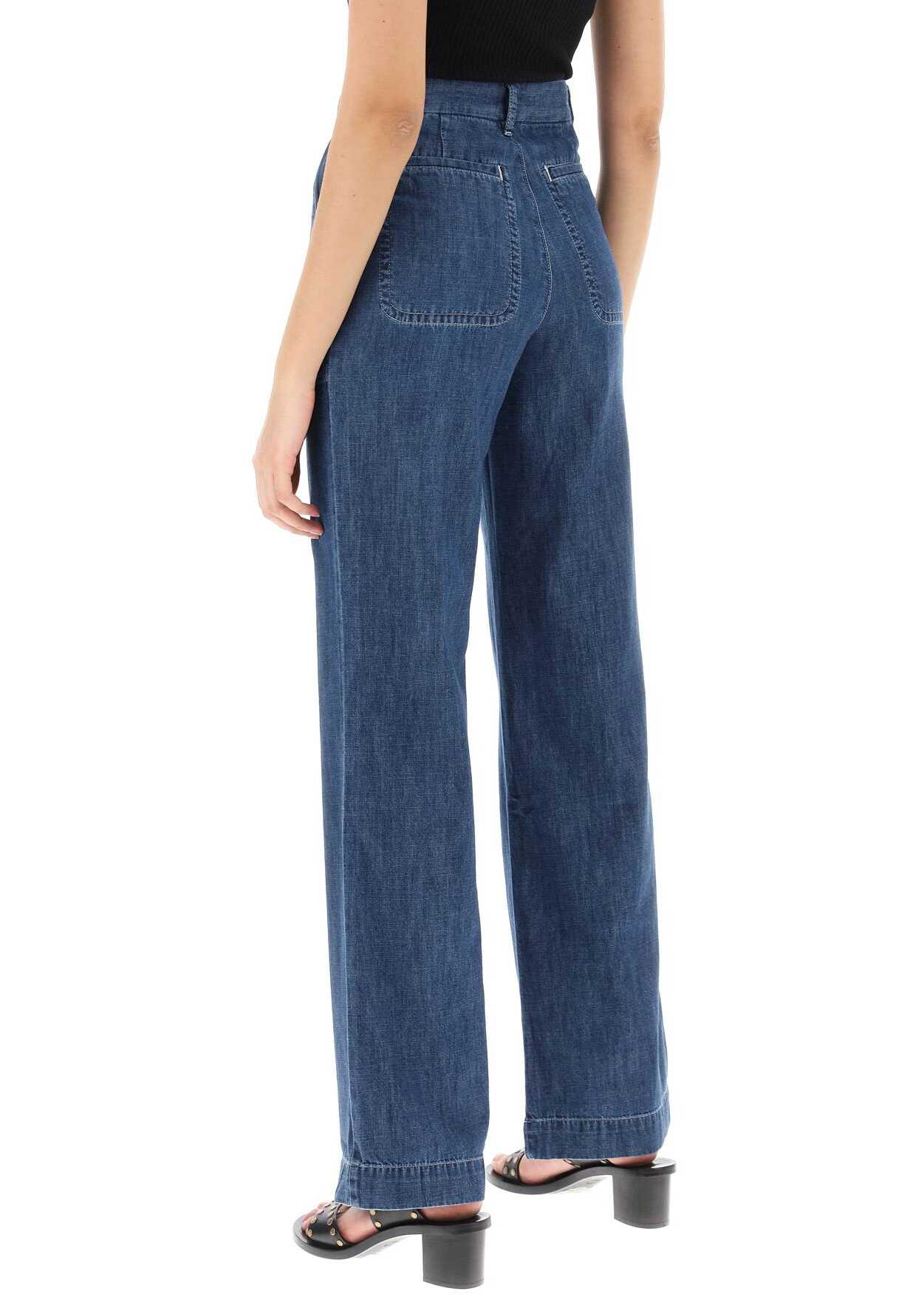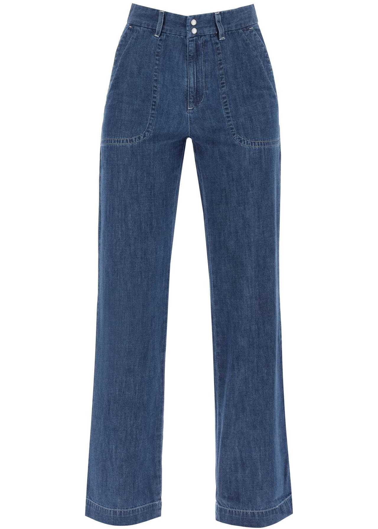 Seaside jeans from A.P.C. made of lightweight cotton denim featuring a high waist and flared cut. Concealed zipper closure with two snap buttons, slash pockets and rear welt pockets. Regular fit. Model is 177 cm tall and wears size 26.