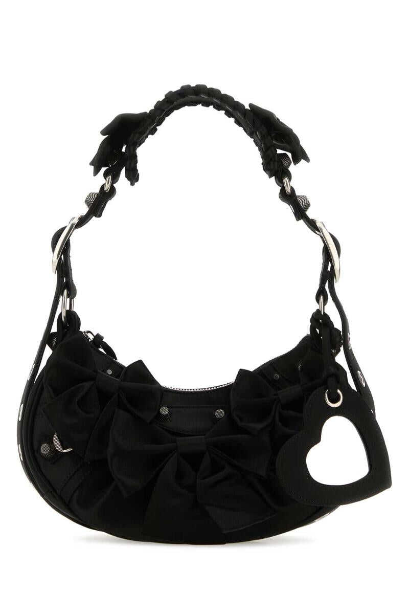 Black satin Le Cagole XS shoulder bag Width: 24 cm Height: 14 cm Depth: 6,5 cm Min handle height: 22 cm Max handle height: 50 cm