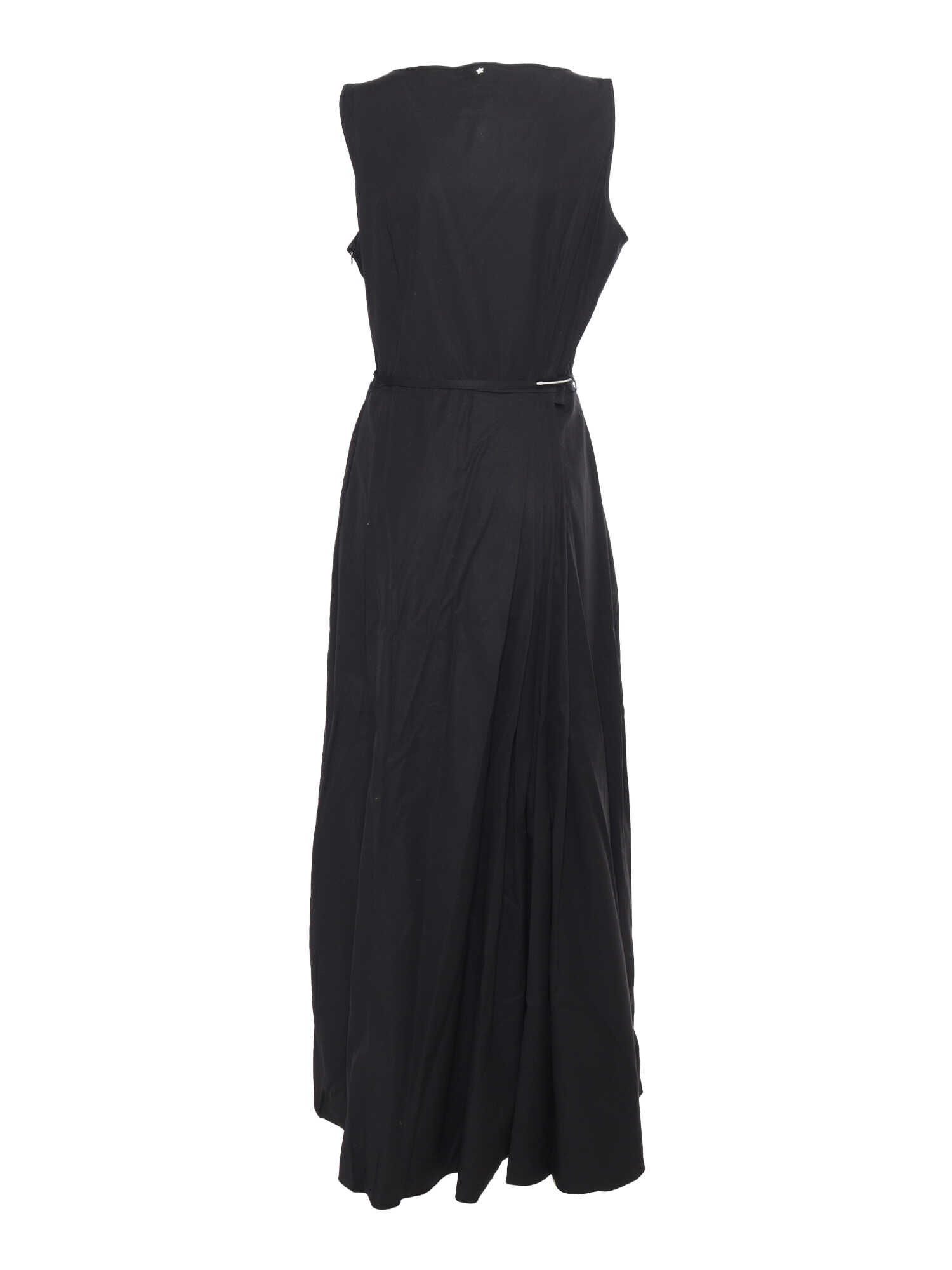 Lorena Antoniazzi long black dress in cotton, sleeveless, V-neck, flared skirt, side zip, adjustable thin strap.
