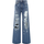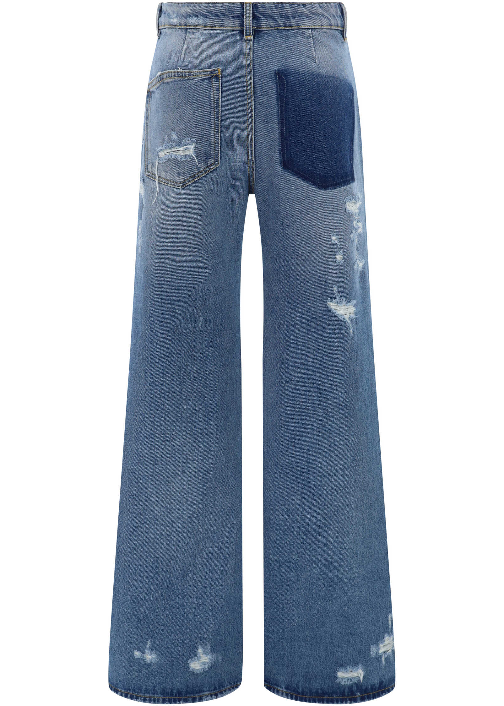 Cotton Jeans by Rabanne, wide-leg five-pocket style, front button and zipper closure, waistband loops, frayed cut-out details on front, regular fit.