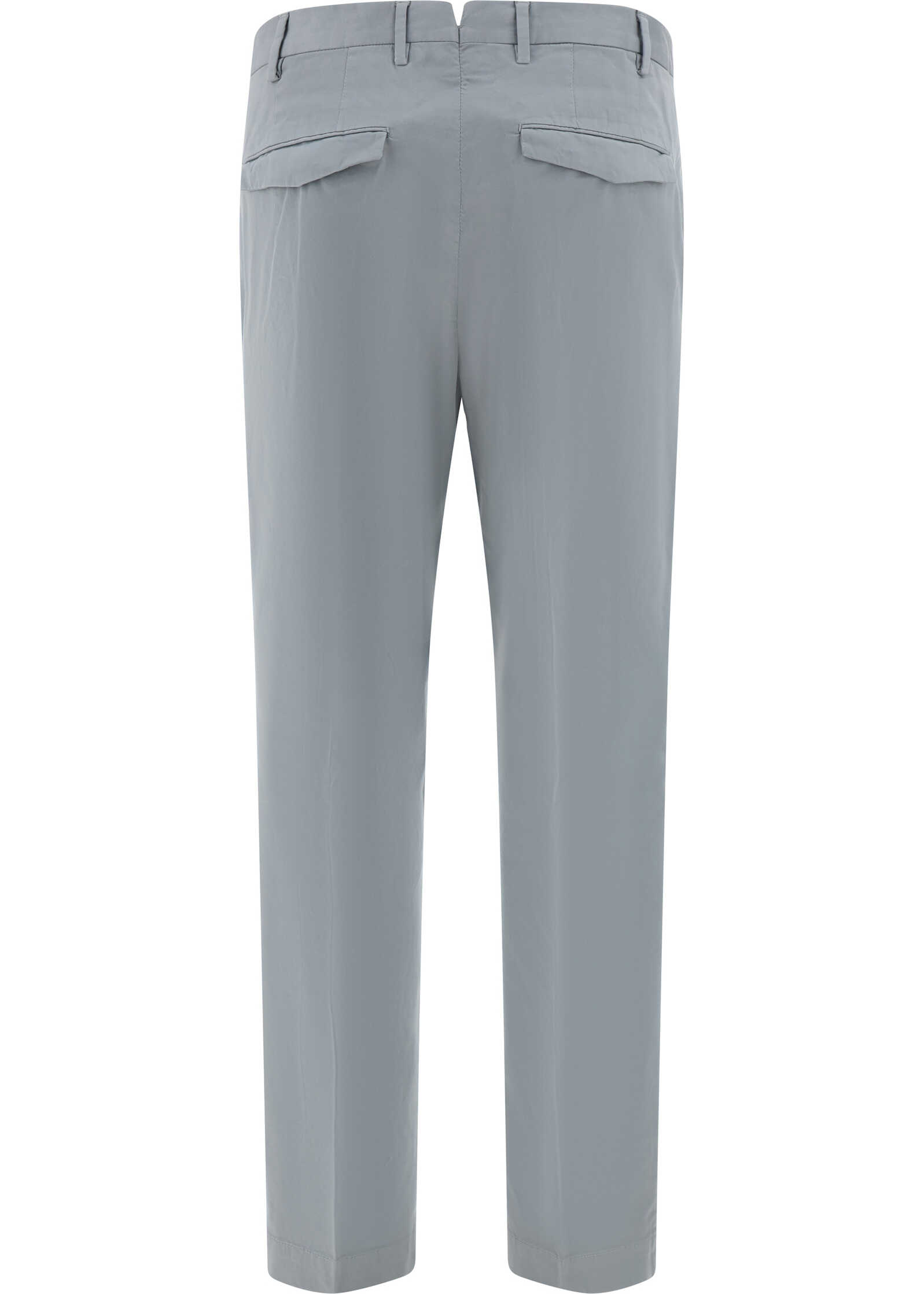 Cotton Pants by PT Torino, front closure with hidden hook and zipper, two side slash pockets, two welt pockets with flap at back, waistband loops, monochrome pattern, regular fit.