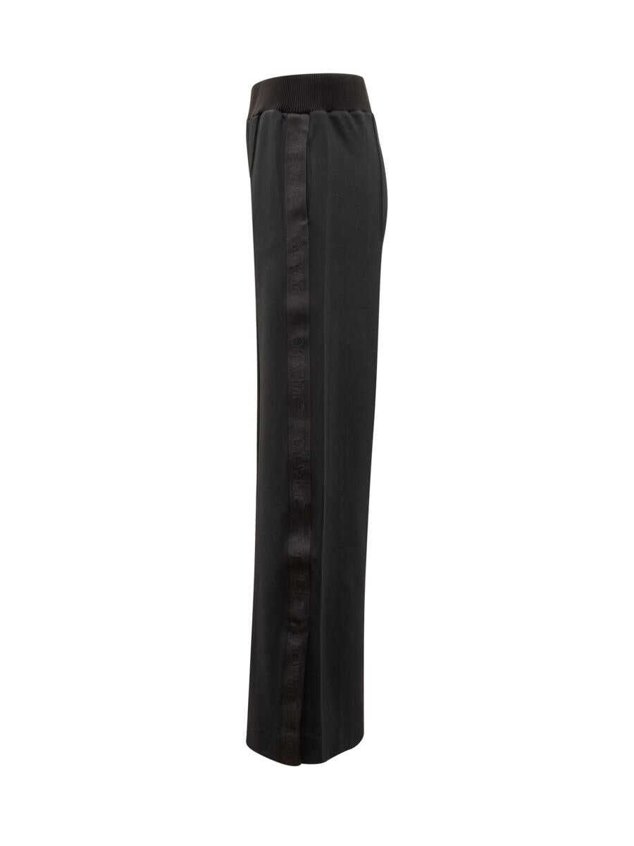 Black sport pants. Wide leg. Pockets at sides. Back pocket. Side bands with Off-White logo.