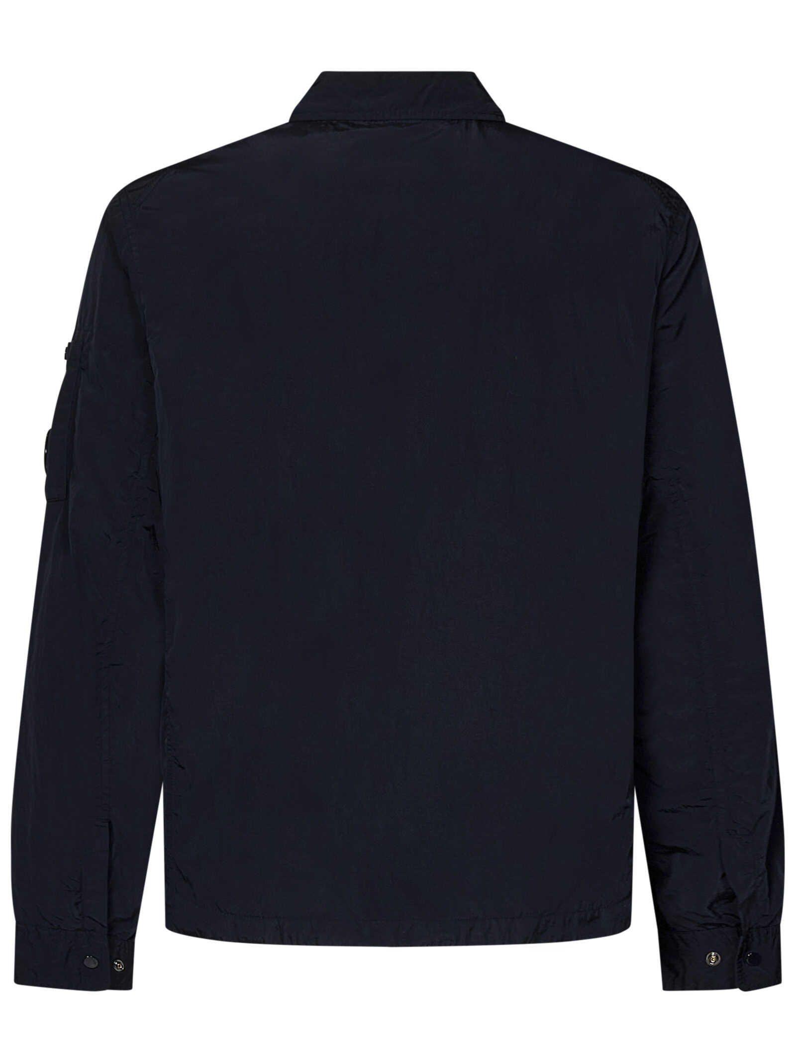 Garment-dyed blue nylon Chrome-R overshirt with Lens detail at sleeve.