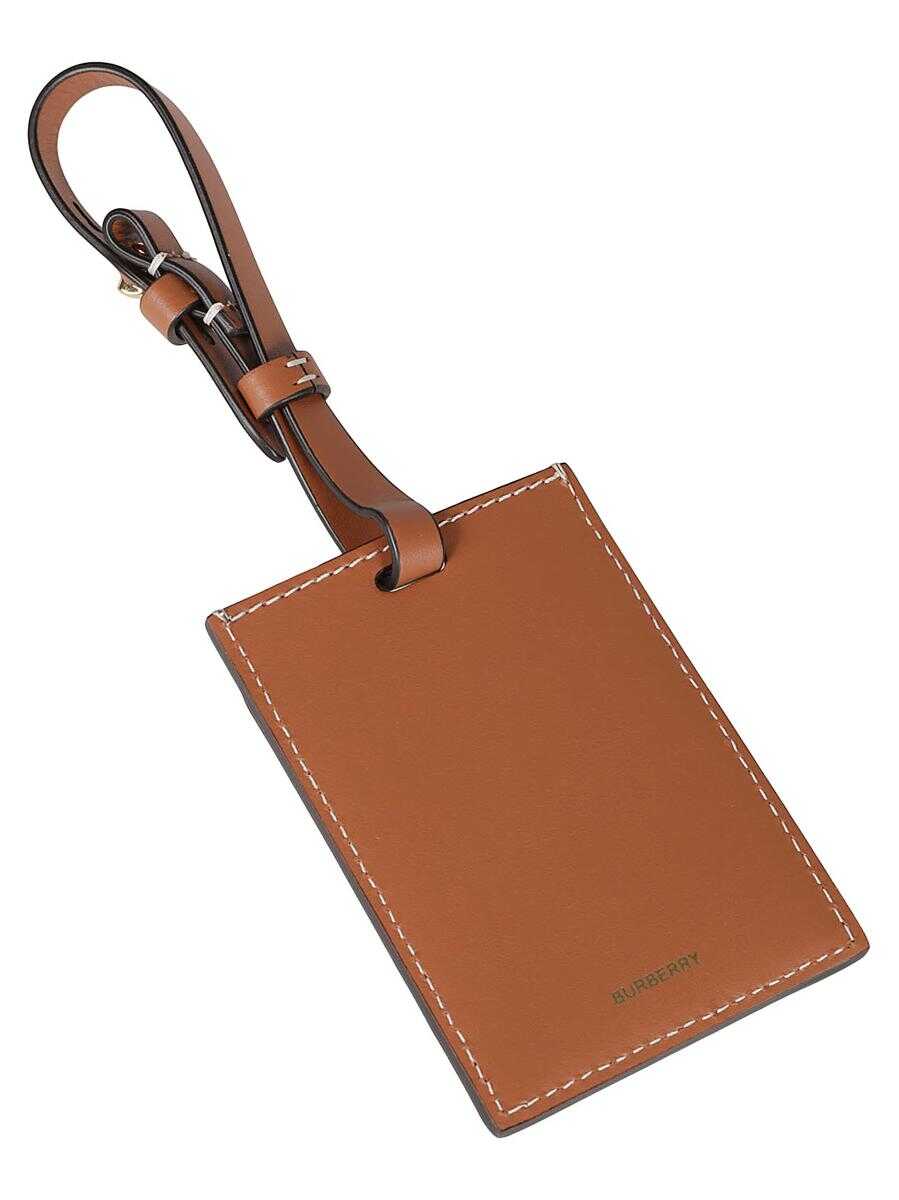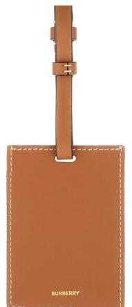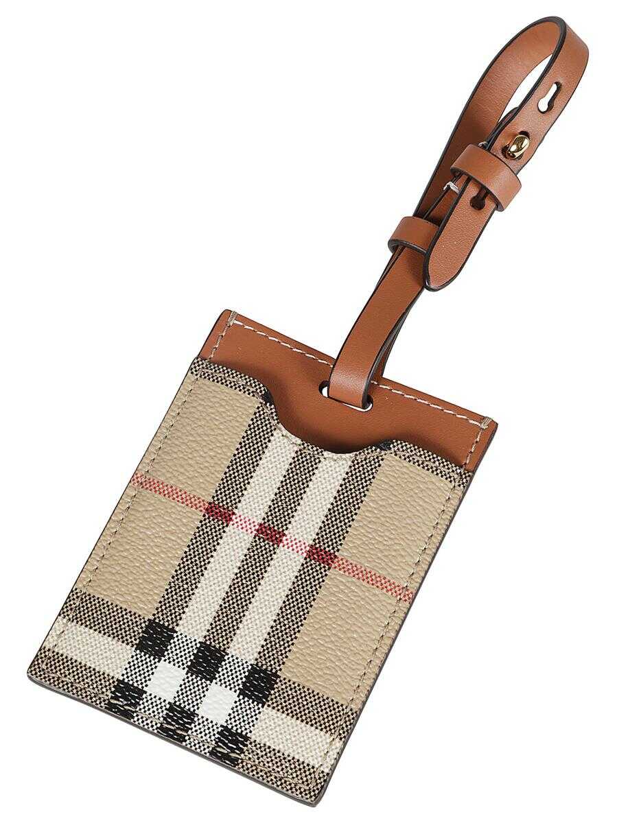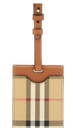 House-check leather luggage tag from BURBERRY featuring archive beige, multicolour, calf leather, grained texture, house check pattern, logo stamp to the rear, contrast stitching and adjustable strap to the front.