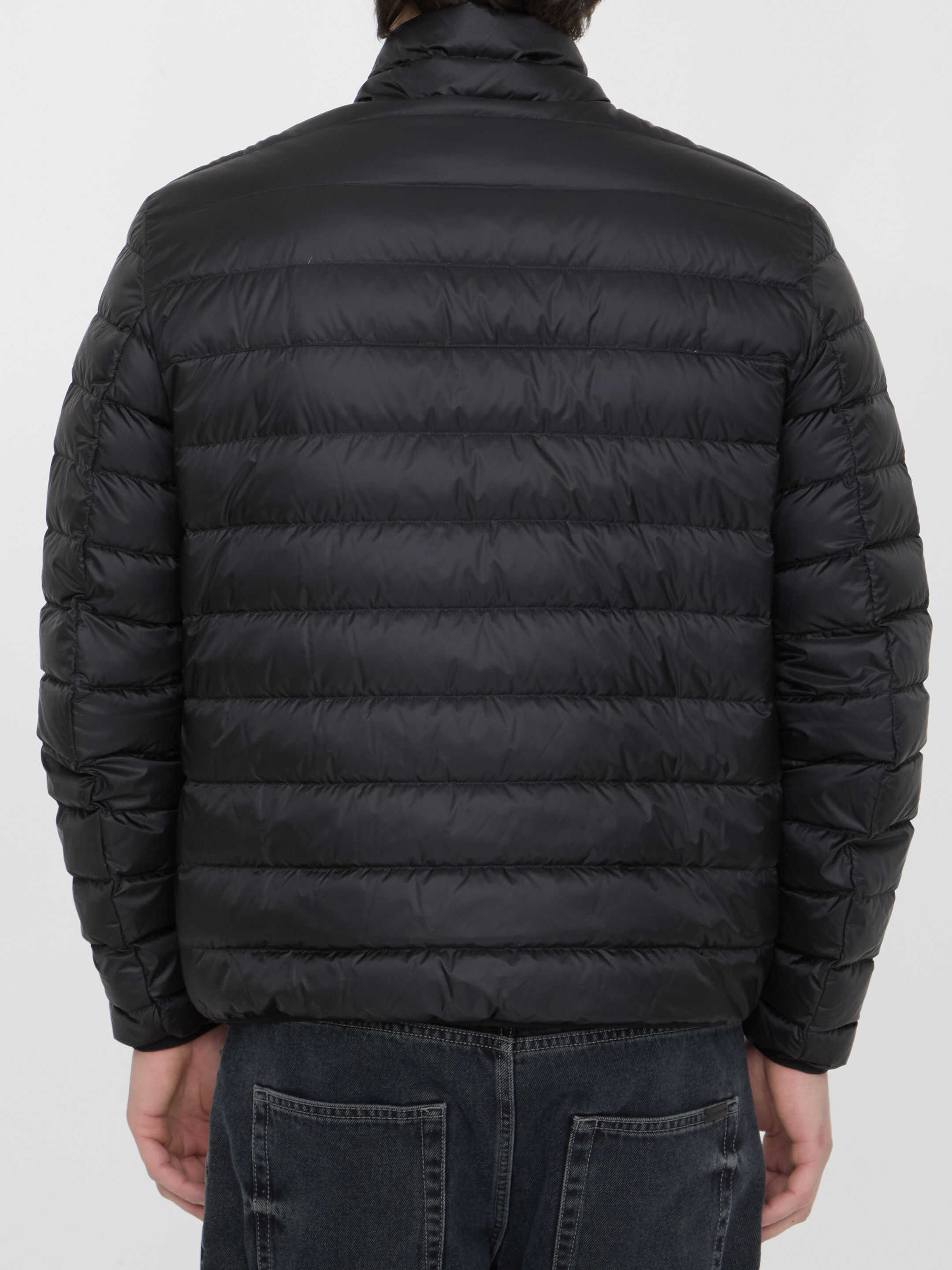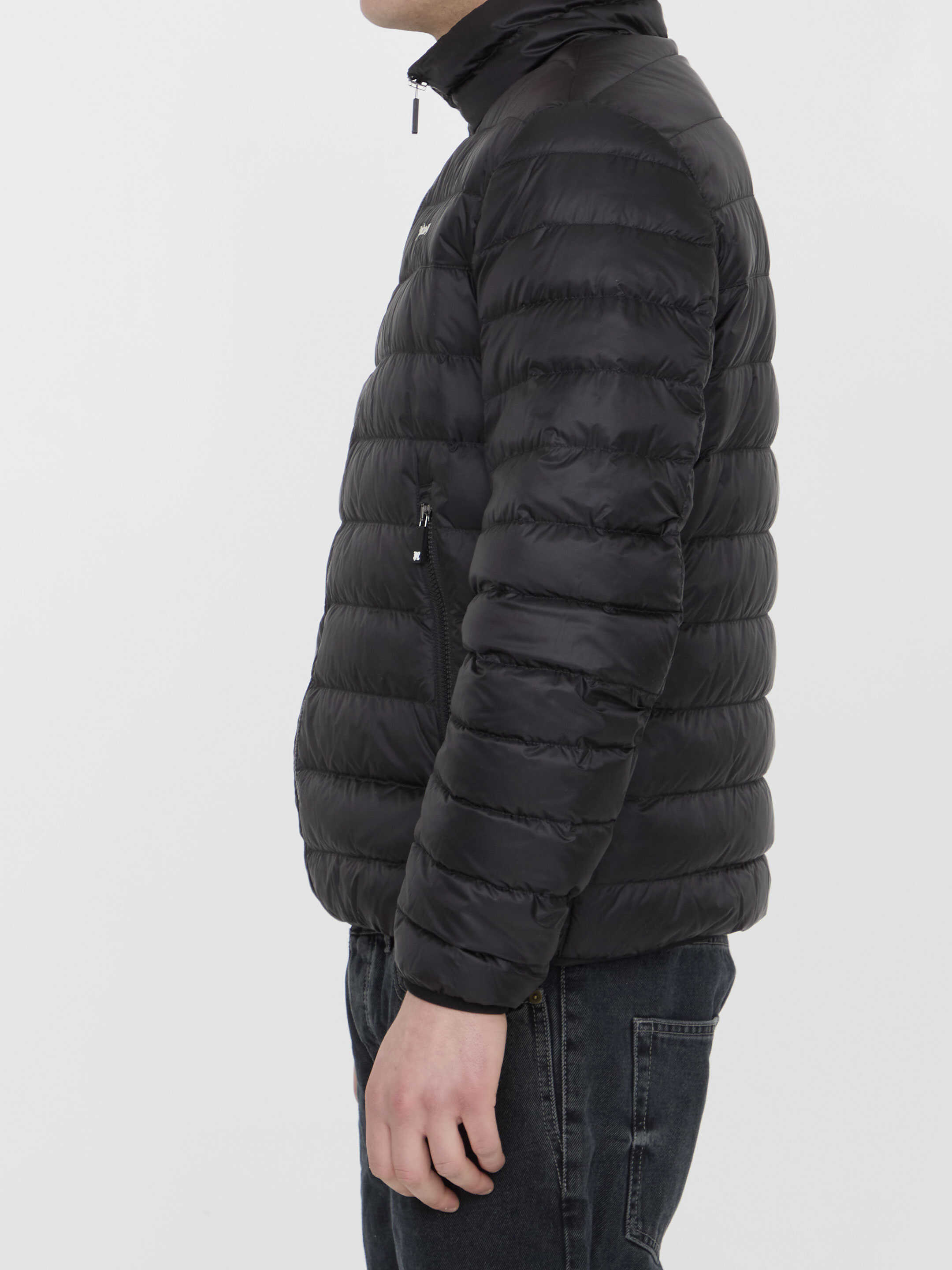 100g short down jacket in black polyamide. It features Palm Angels logo on chest, front zip closure and two side zip pockets. Regular fit.
