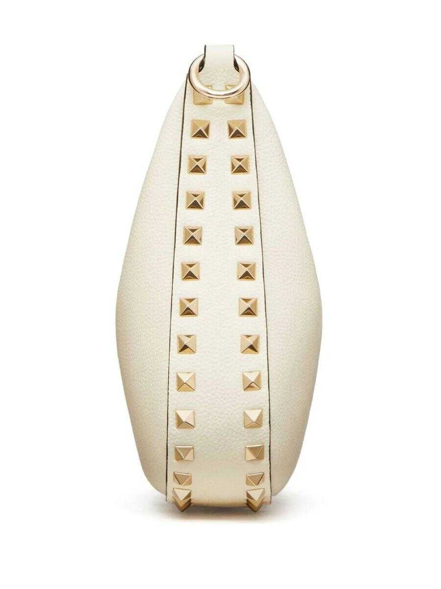 Valentino Garavani's hobo bag crafted in ivory grained leather adorned with signature platinum-tone metal studs. Featuring zip closure, top handle and adjustable / removable strap. Tone-on-tone leather-lined interior with slip pocket. The design is completed by the unmistakable logo embossed at back.