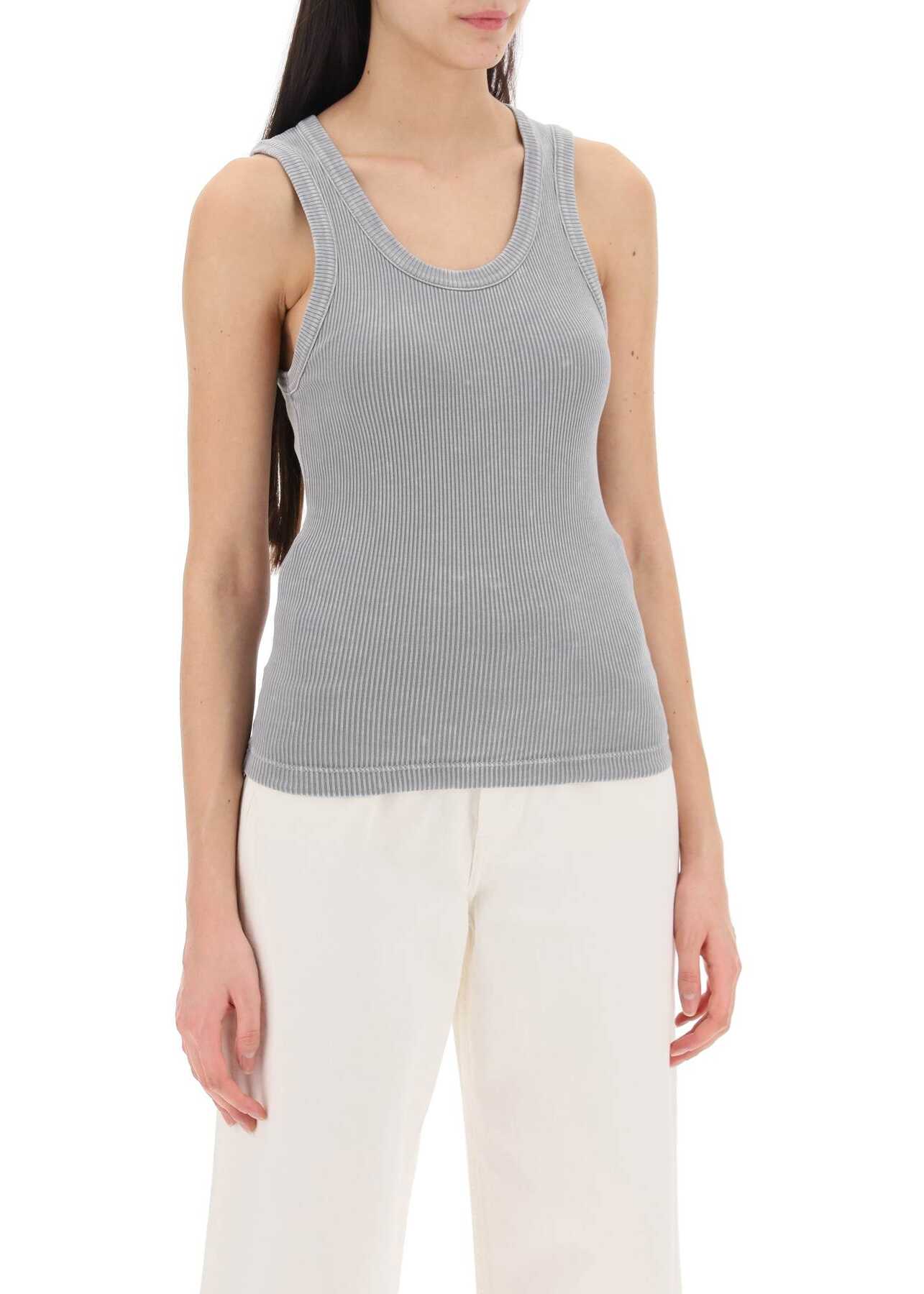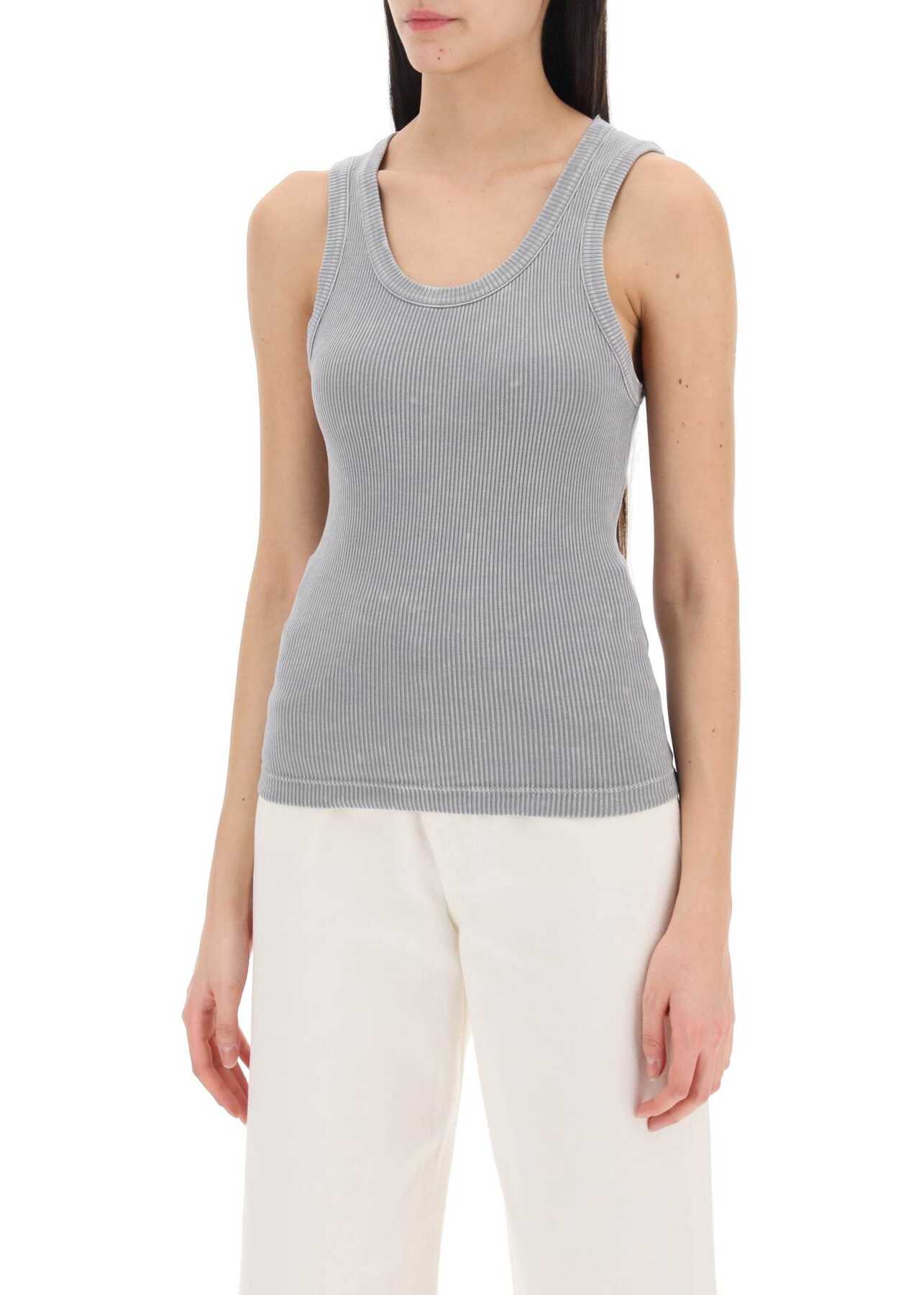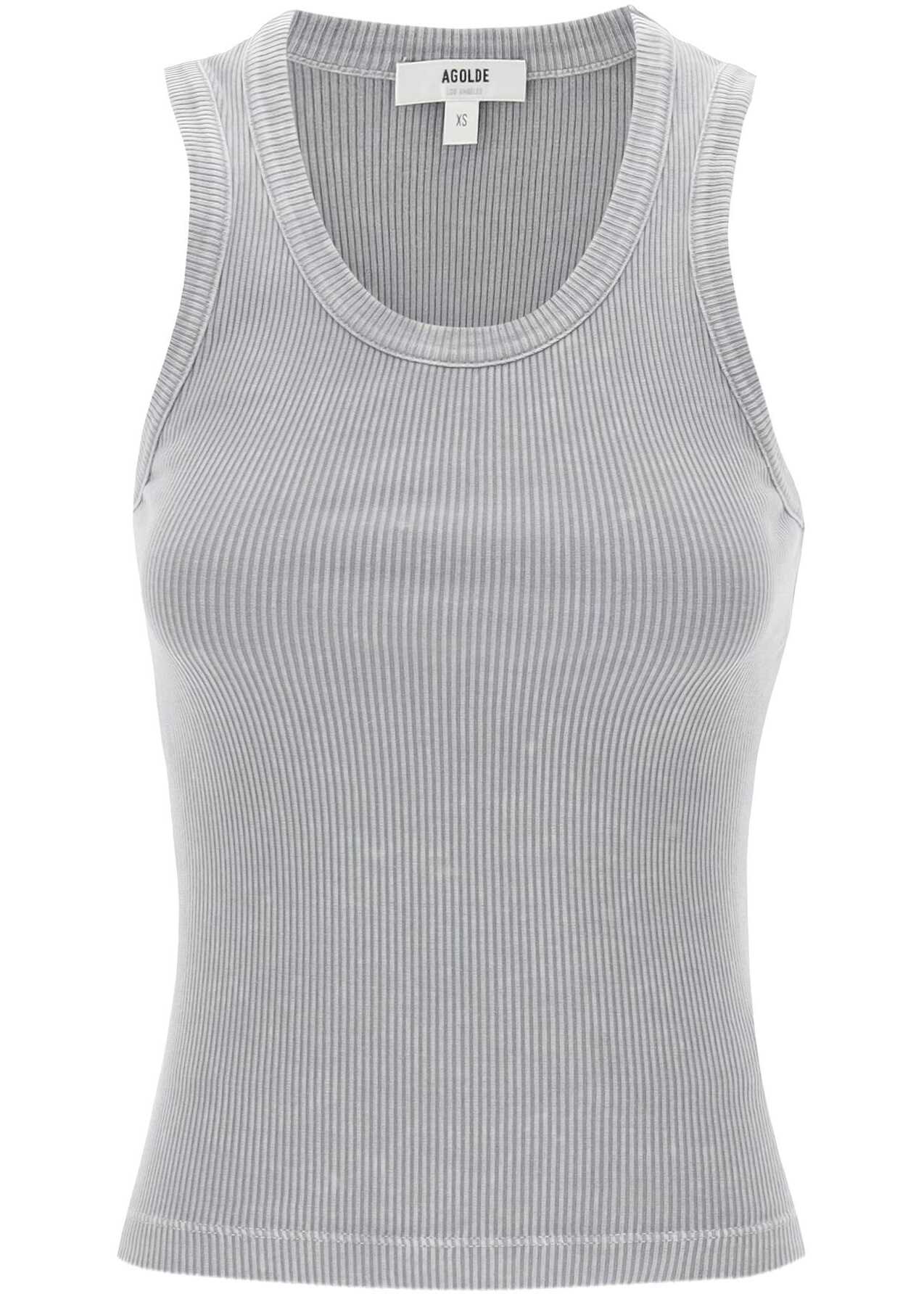 This Agolde sleeveless top is made of ribbed organic cotton jersey. It features a wide neckline and has a fitted silhouette. The model is 177 cm tall and wears size XS.