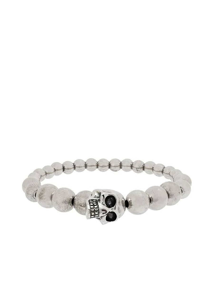 in brass with elasticated silver finish with multi beads and skull detail