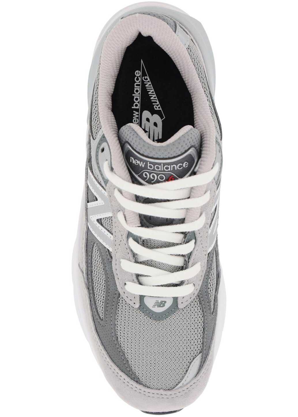 The New Balance 990v6 Made In USA sneakers feature a technical fabric upper with suede inserts. They also have the iconic N logo on the sides, laminated details, front lacing, a logo patch on the tongue, and a lined interior with a removable insole. The ENCAP midsole and rubber sole provide comfort and durability.