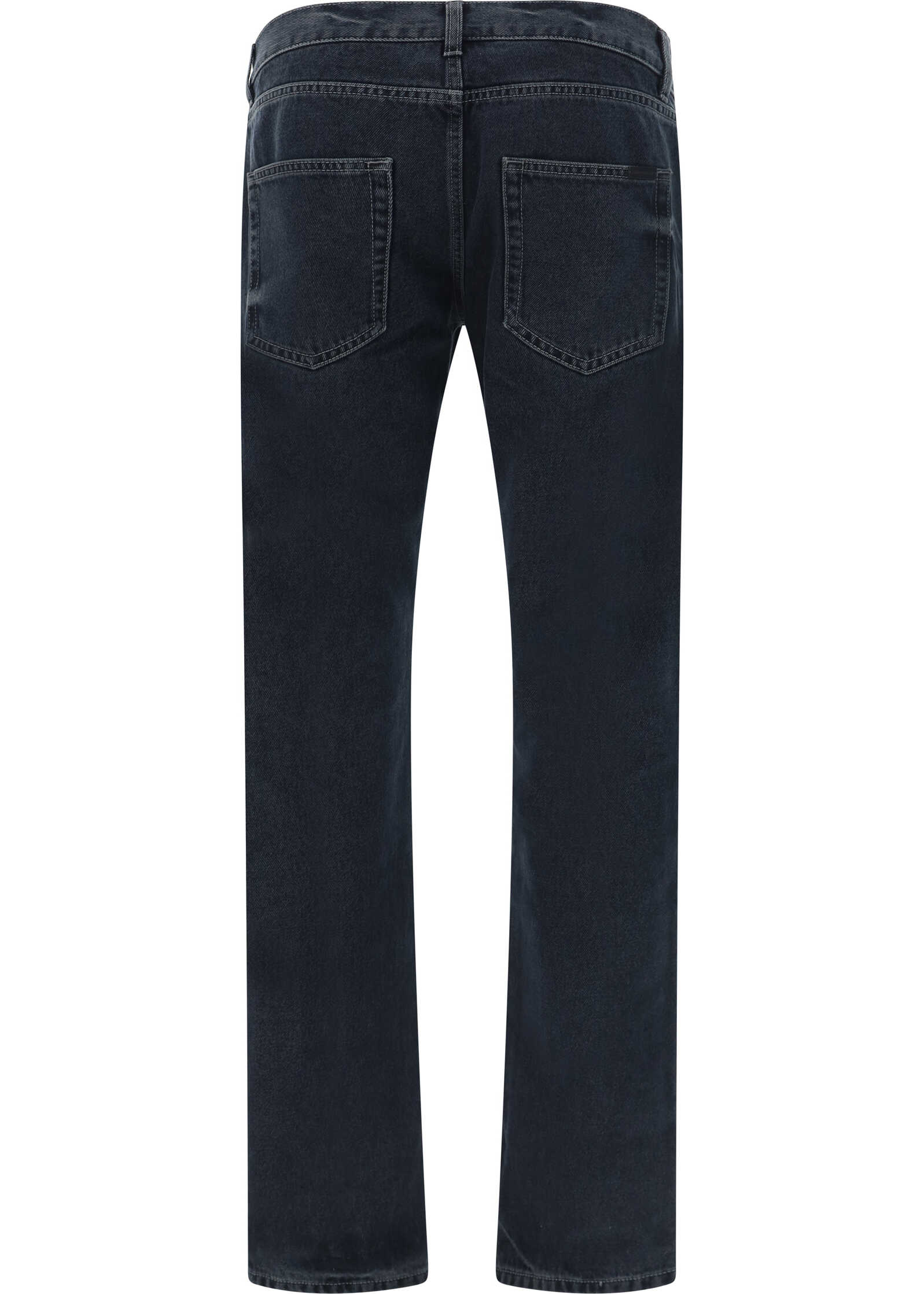 Cotton Jeans by Saint Laurent, five-pocket straight style, front button closure, monochrome pattern, slim fit.