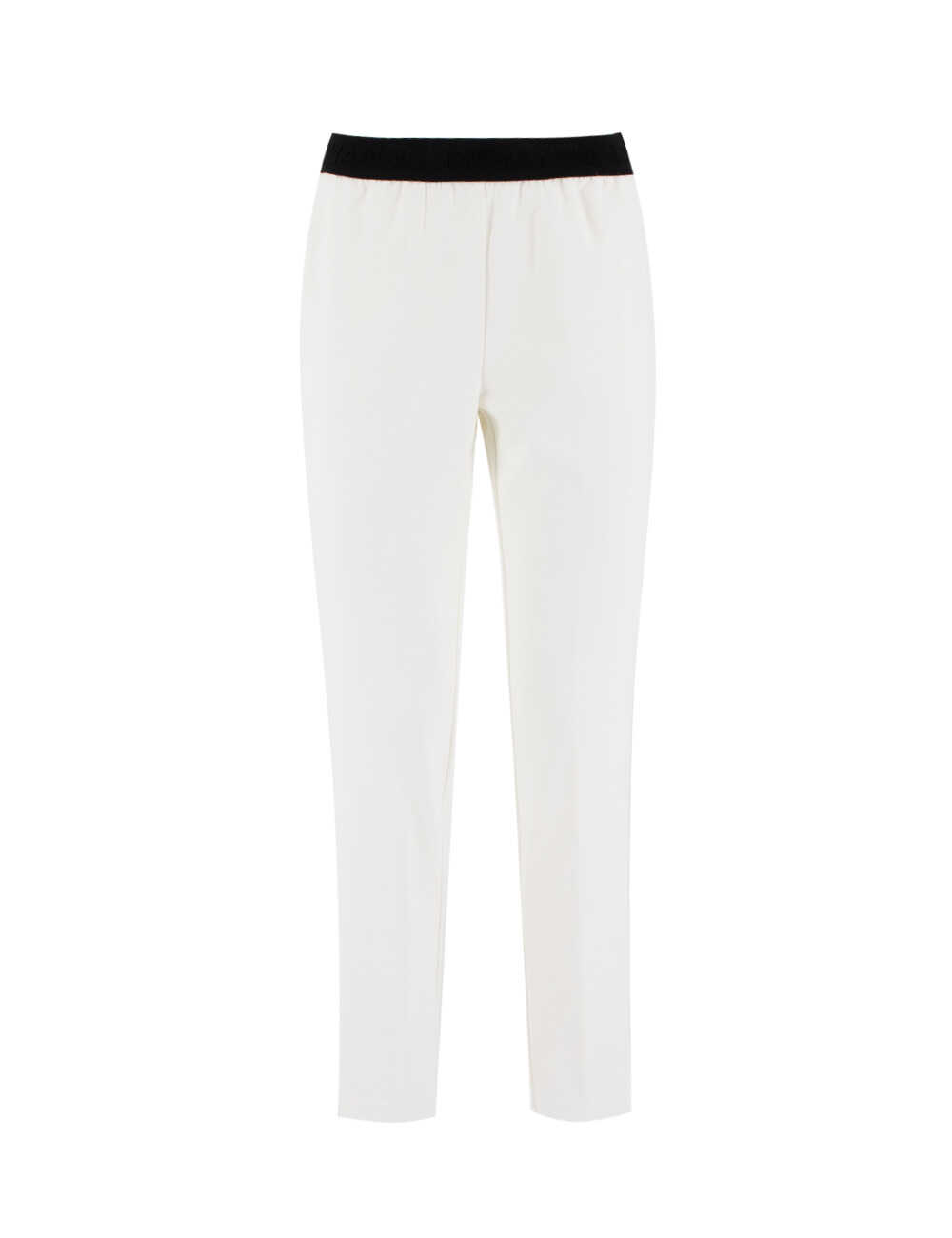 Stretch cotton trousers with tailored pleat, elastic waistband with ton sur ton brand logo, side pockets, regular fit.