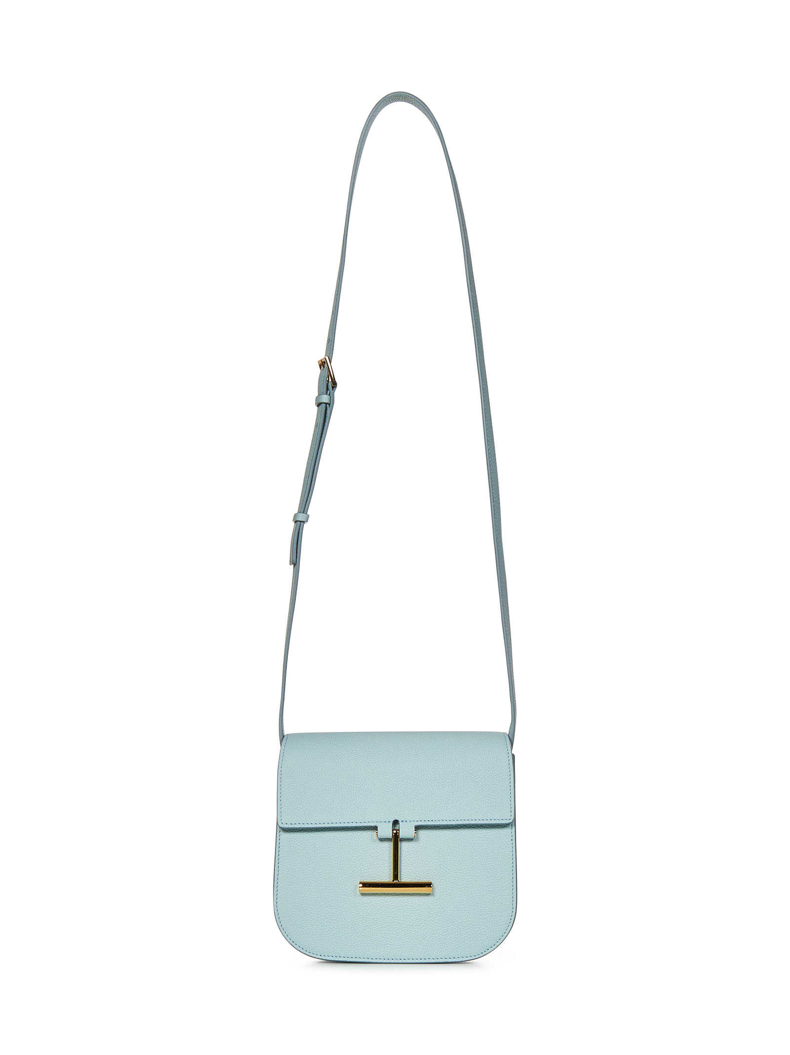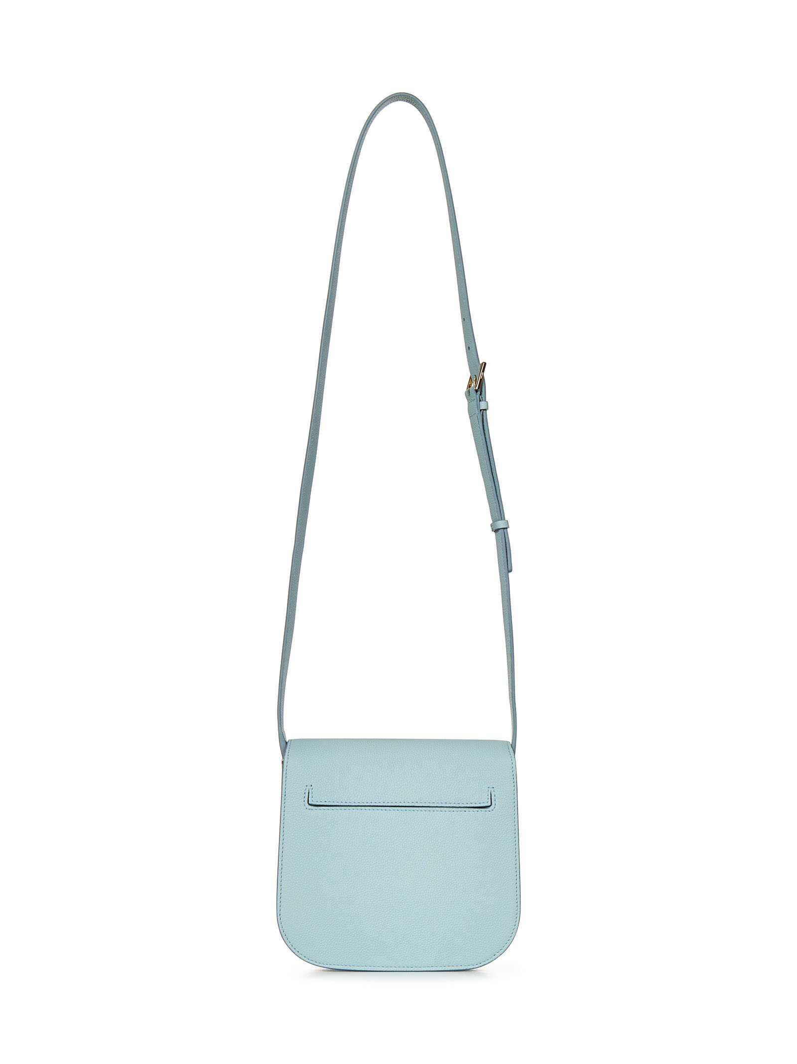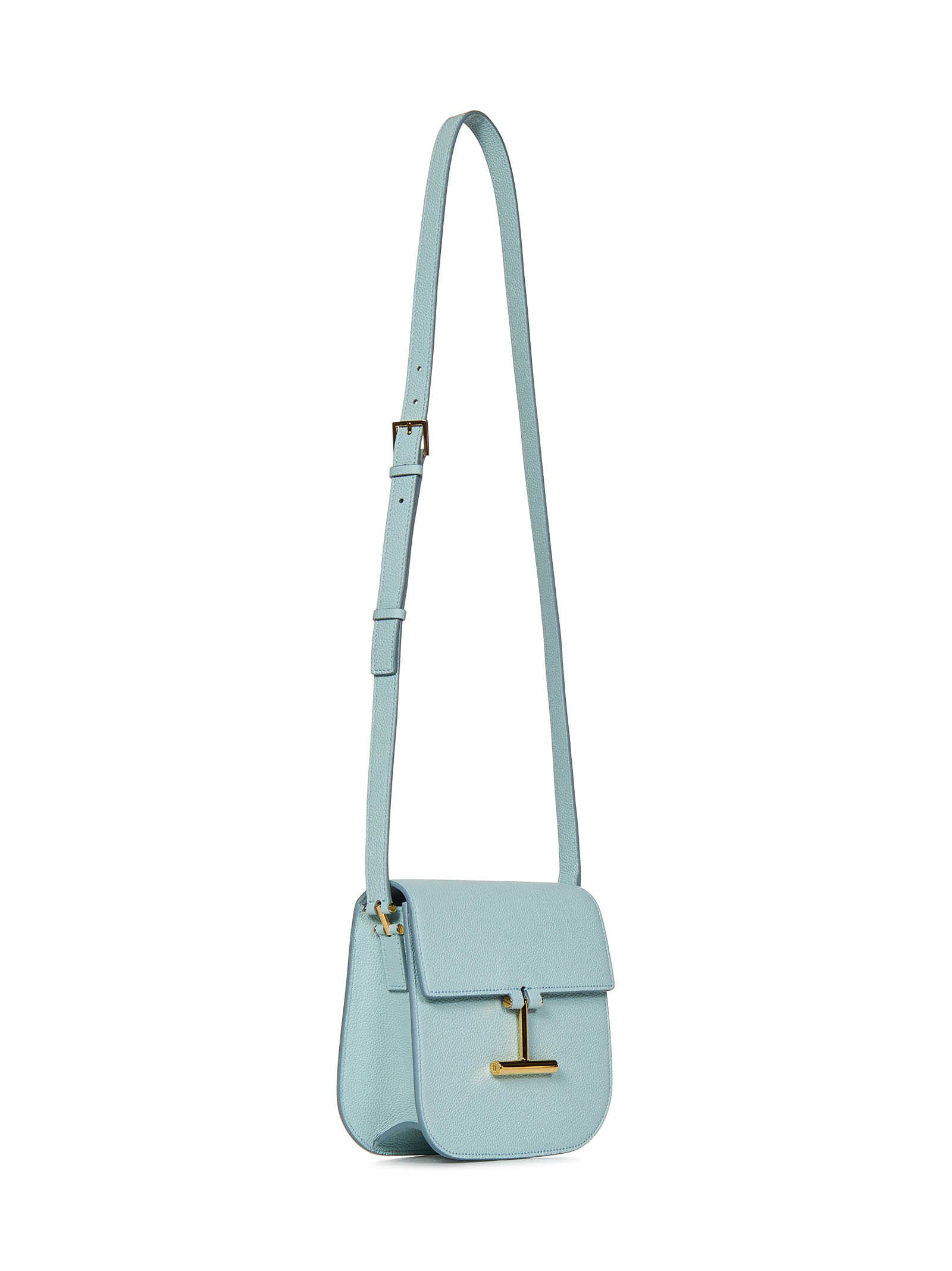Mini pastel blue grained calf leather crossbody bag with shoulder strap and T-detail.