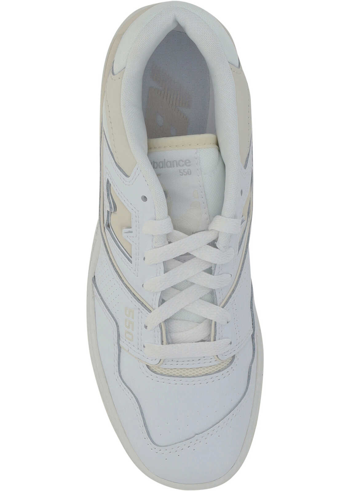 Calfskin 550 Sneakers by New Balance, lace-up front closure, embroidered brand logo patch on front tab, slightly elongated toe, tone-on-tone embossed brand logo on side sole, perforated side panels, iconic brand monogram on side panels, contrasting brand logo on heel.