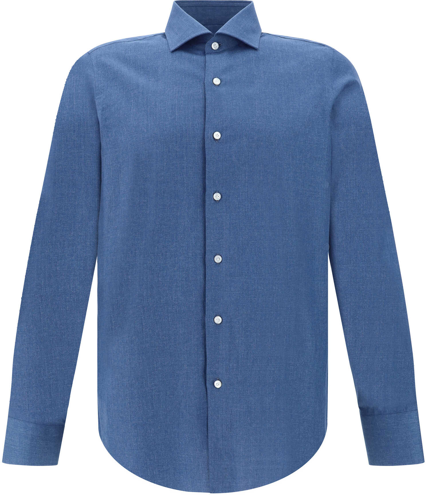 Napoli-Zante Cotton Shirt by Finamore, featuring classic collar, front button closure, adjustable button cuffs, monochrome pattern, regular fit.