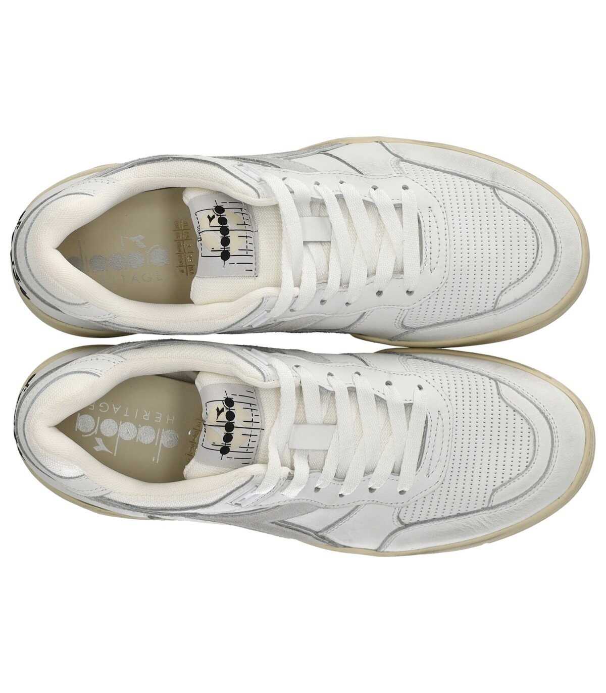 B560 Used sneaker by Diadora Heritage made of leather, mesh, and suede in white tones. Perforated effect toe, logo on the side and heel, and white cotton laces. Fabric lining and leather insole. Rubber sole, 3.5 cm high.