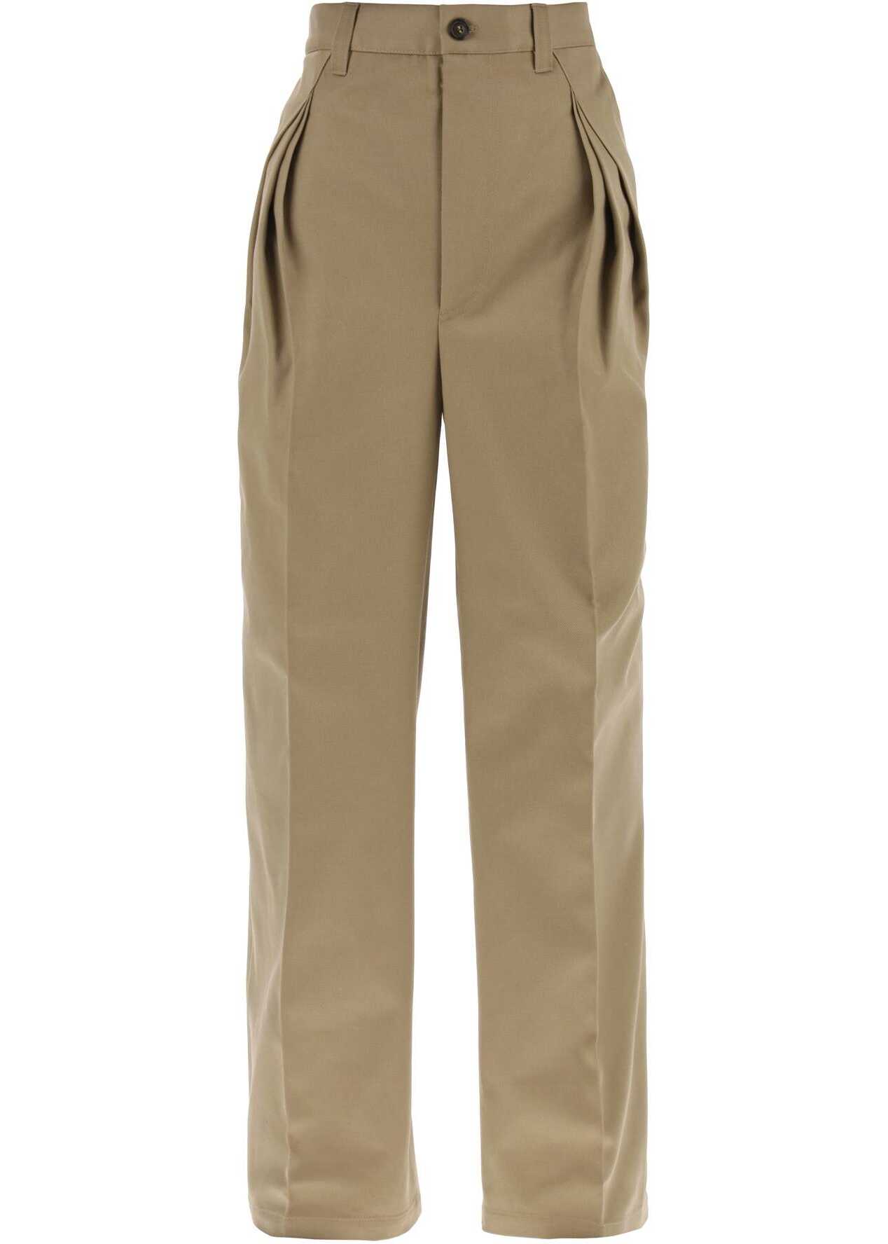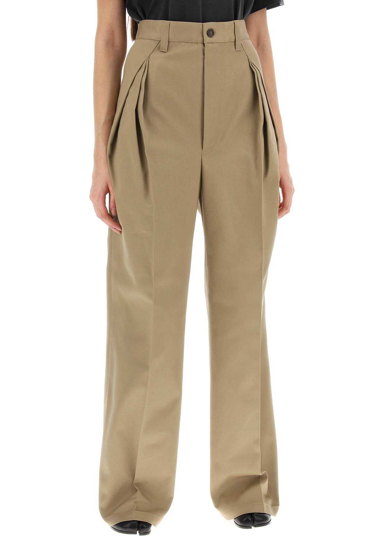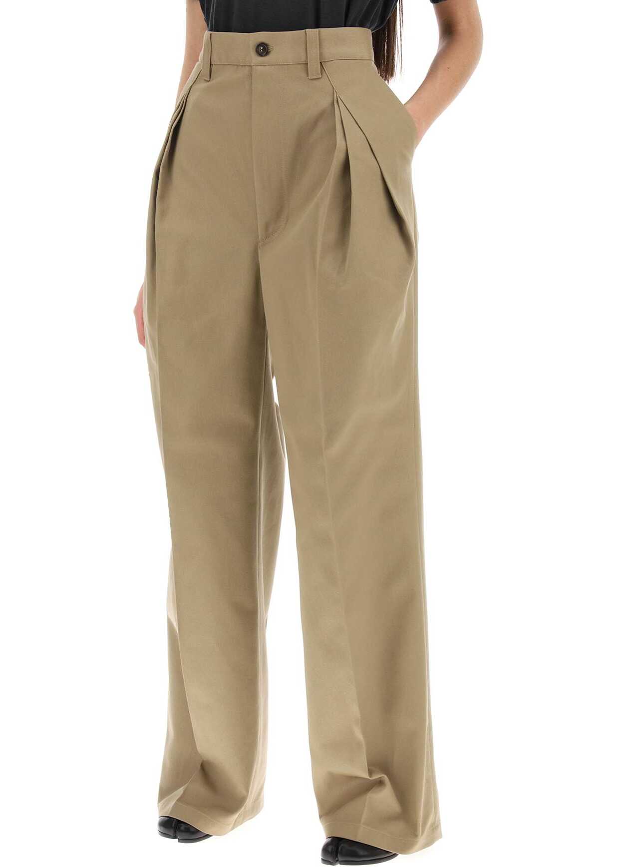 Maison Margiela trousers in cotton blend twill with triple pleat on the front. Featuring belt loops, four pockets and a zip and button closure, they have a straight cut with an oversized fit. The model is 177 cm tall and wears size 40.