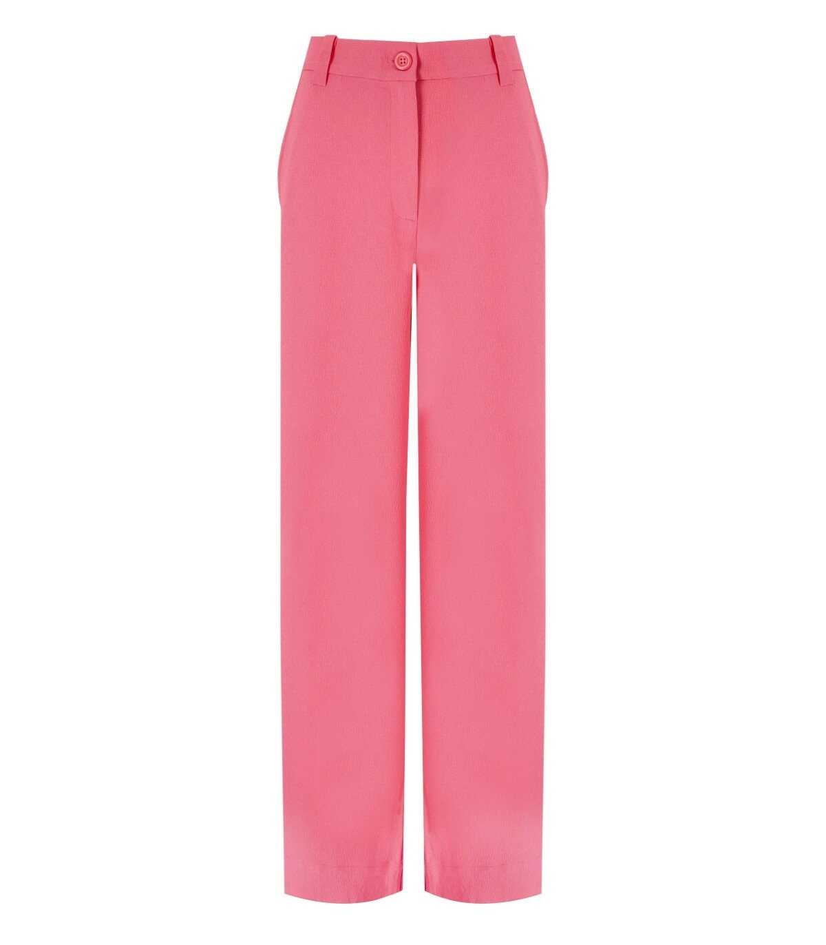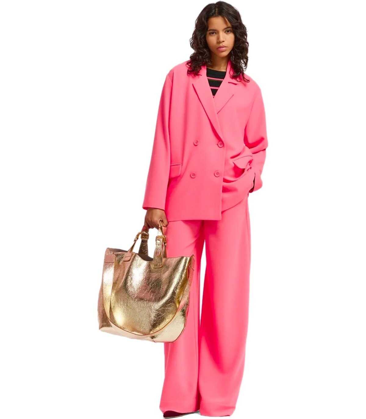 Fall pants by Essentiel Antwerp made of recycled pink polyester fabric. High waist, welt pockets on the hips, zip and button closure. Wide leg.
