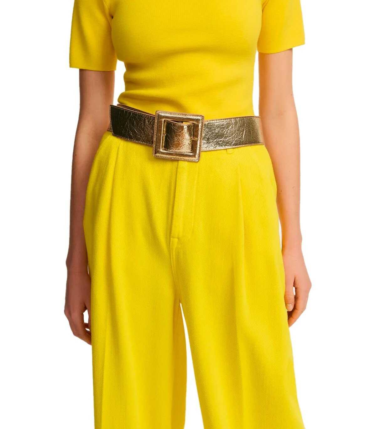 Essentiel Antwerp Fumigate belt made of eco-friendly gold-colored leather with a crinkle effect finish. Gold metal hardware.