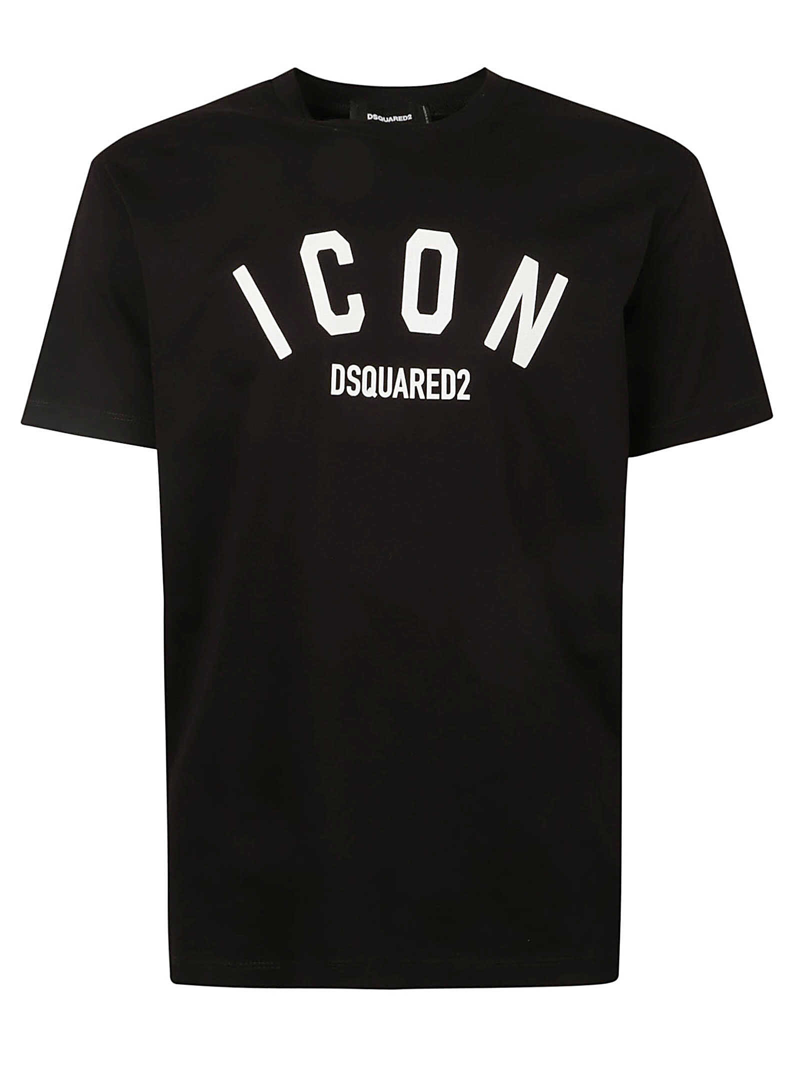 Icon-print T-shirt from DSQUARED2 featuring black/white, cotton, slogan print to the front, logo print to the front, crew neck, short sleeves and straight hem.