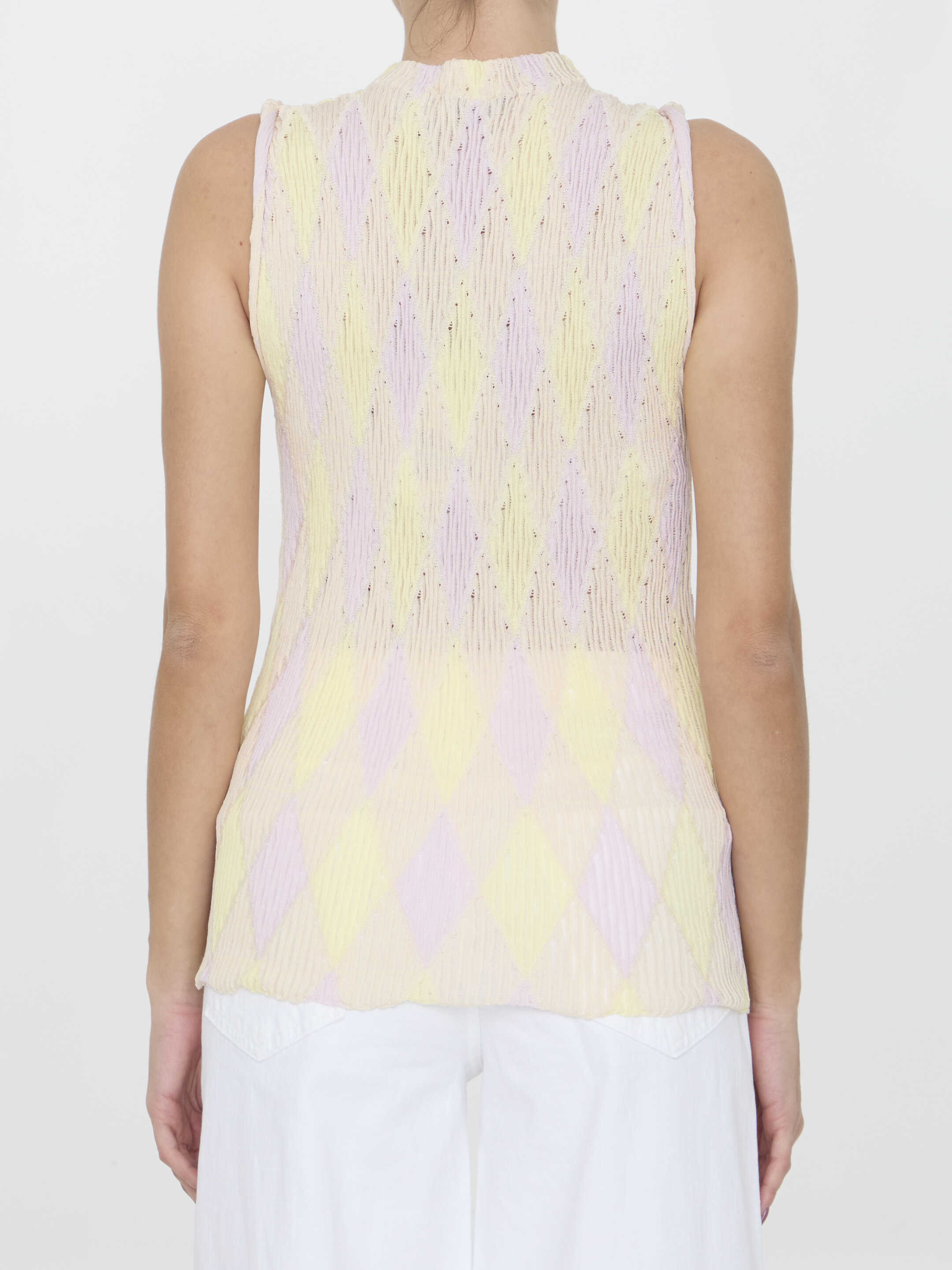 Sleeveless top in ribbed cotton and silk with all-over Argyle pattern. Rolled edges at cuffs. Slim fit.