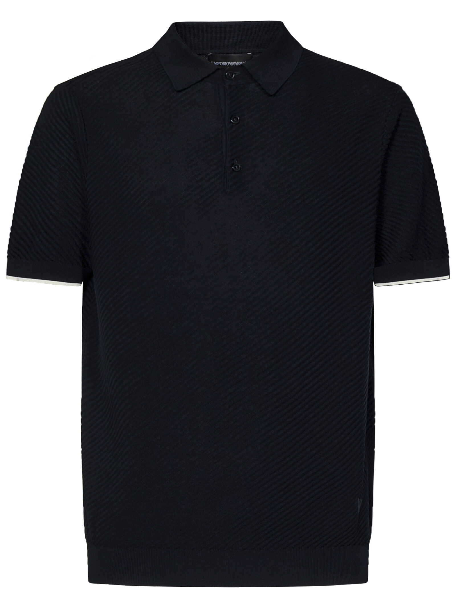 Navy blue polo shirt in patterned cotton knit with eagle logo embroidery on the bottom.