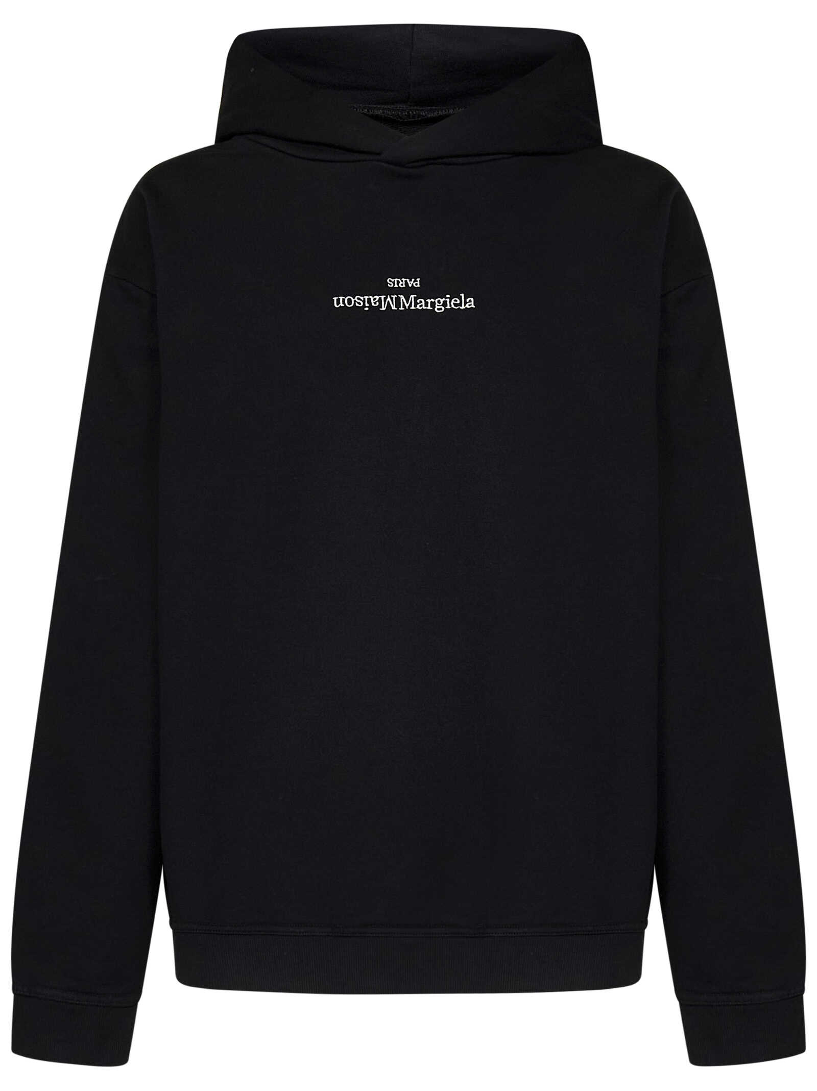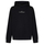 Black cotton hoodie with logo embroidered at chest.