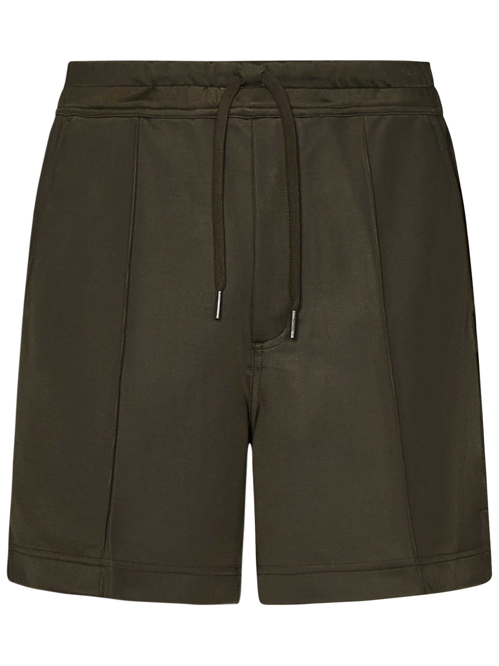 Dark olive stretch luxury viscose shorts with elasticated waistband.
