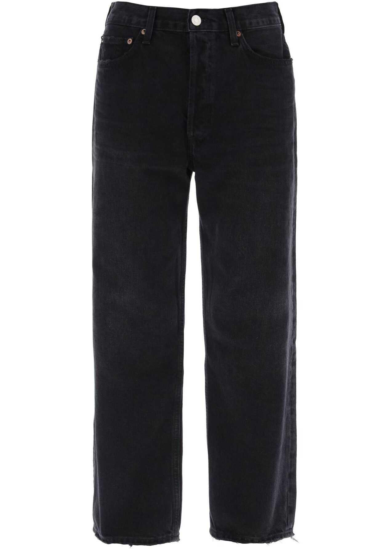 Agolde's 90'S jeans are made of cotton denim and feature a straight cut. They have a five-pocket design with subtle distressed details, hidden button closure, and a regular fit. The model is 187 cm tall and wears size 31.