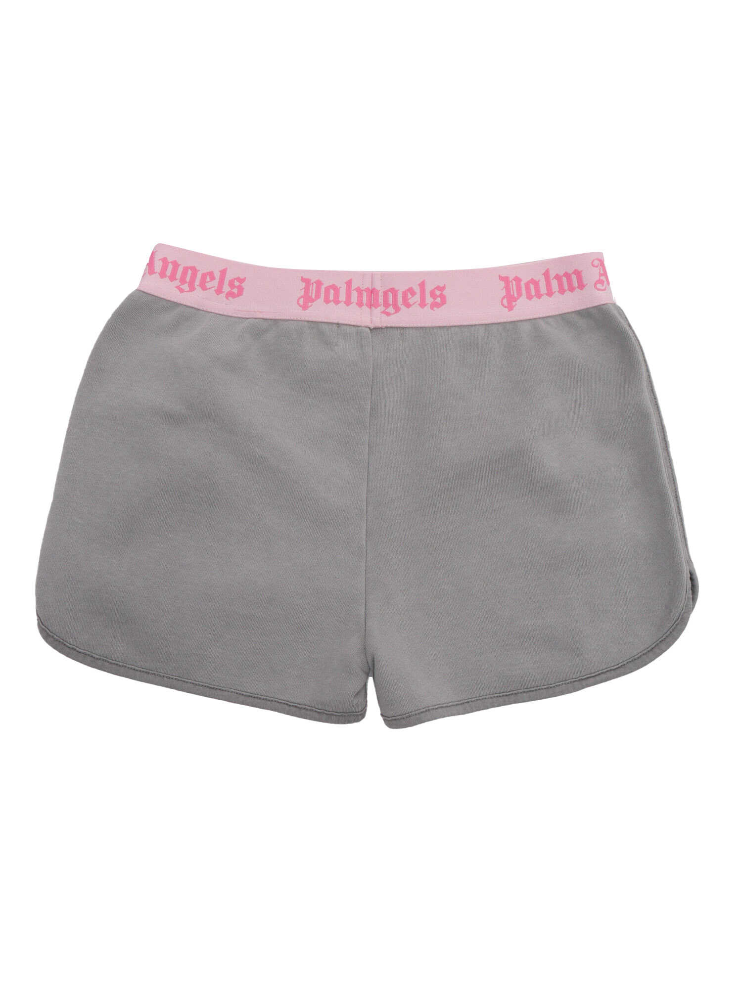 Light gray Palm Angels shorts for girls in cotton blend, contrasting elastic waistband with logo.