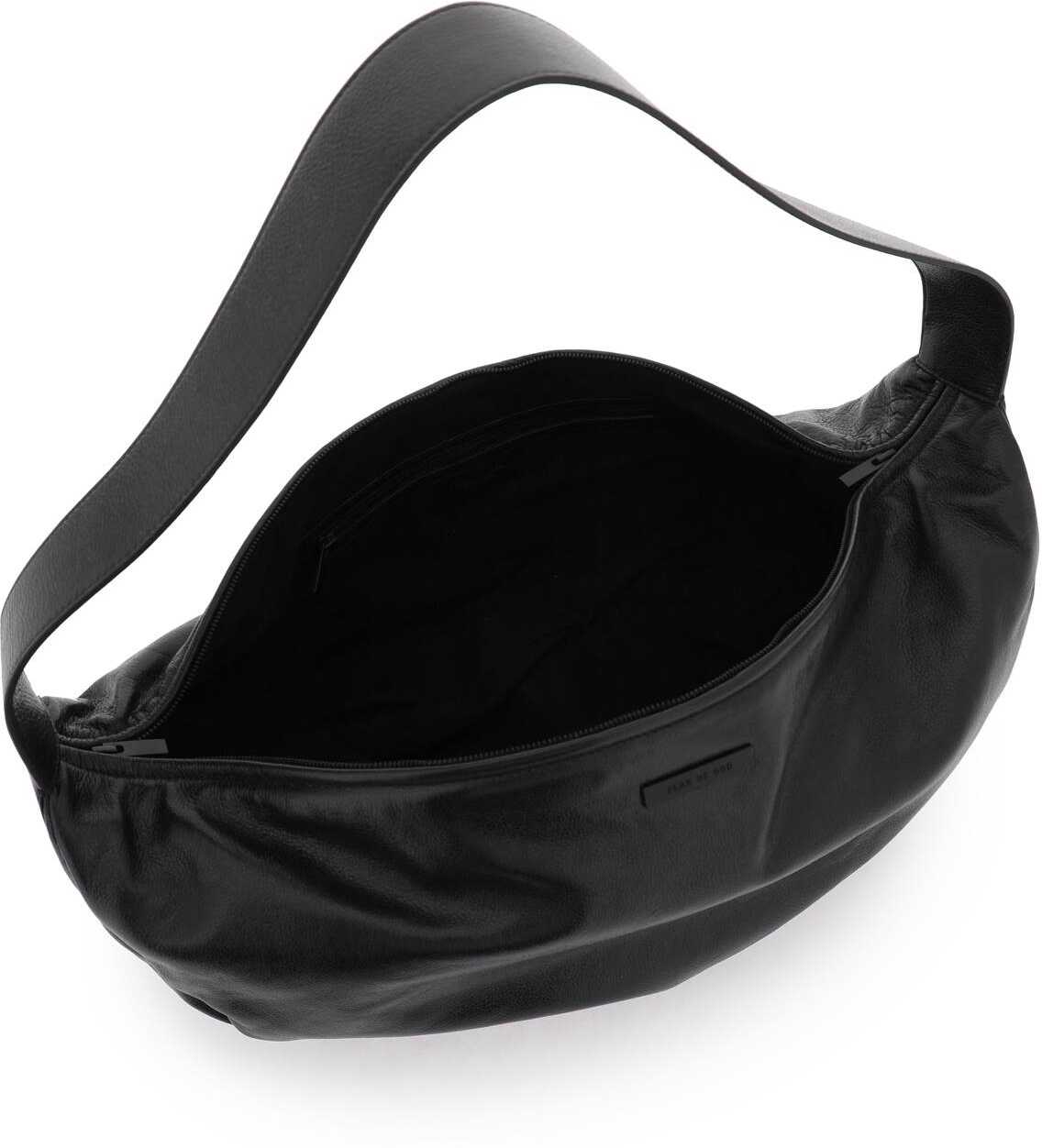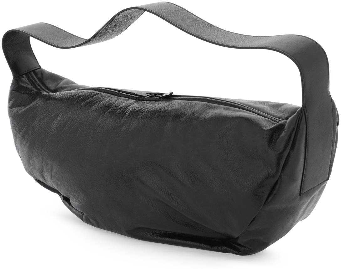 The Fear Of God Shell shoulder bag is made of glossy hammered nappa leather and features soft shell-shaped forms that perfectly wrap around the body. The top closure has a two-way tonal metal zipper, while the interior is lined with microfiber suede and includes a zip pocket. The wide top handle adds versatility to the look.