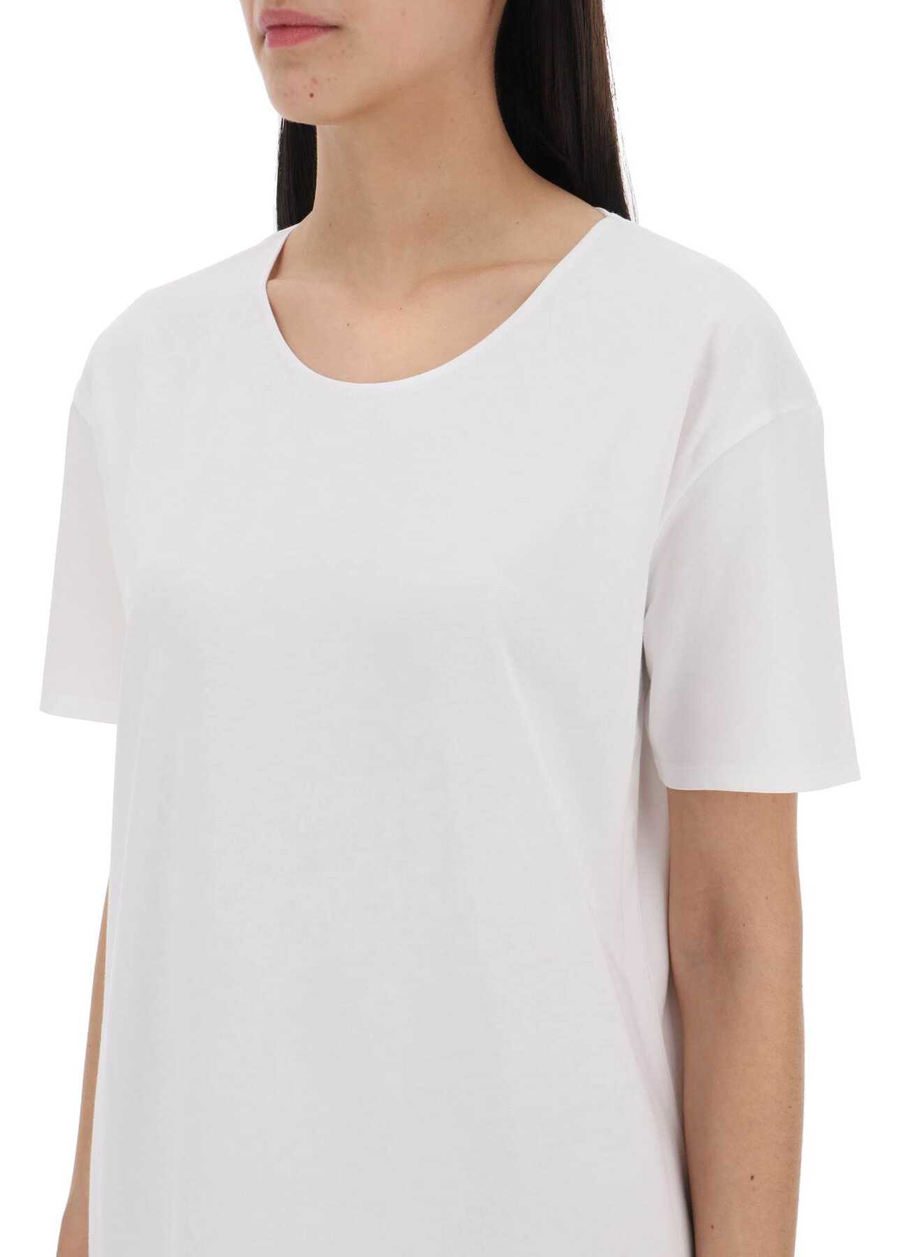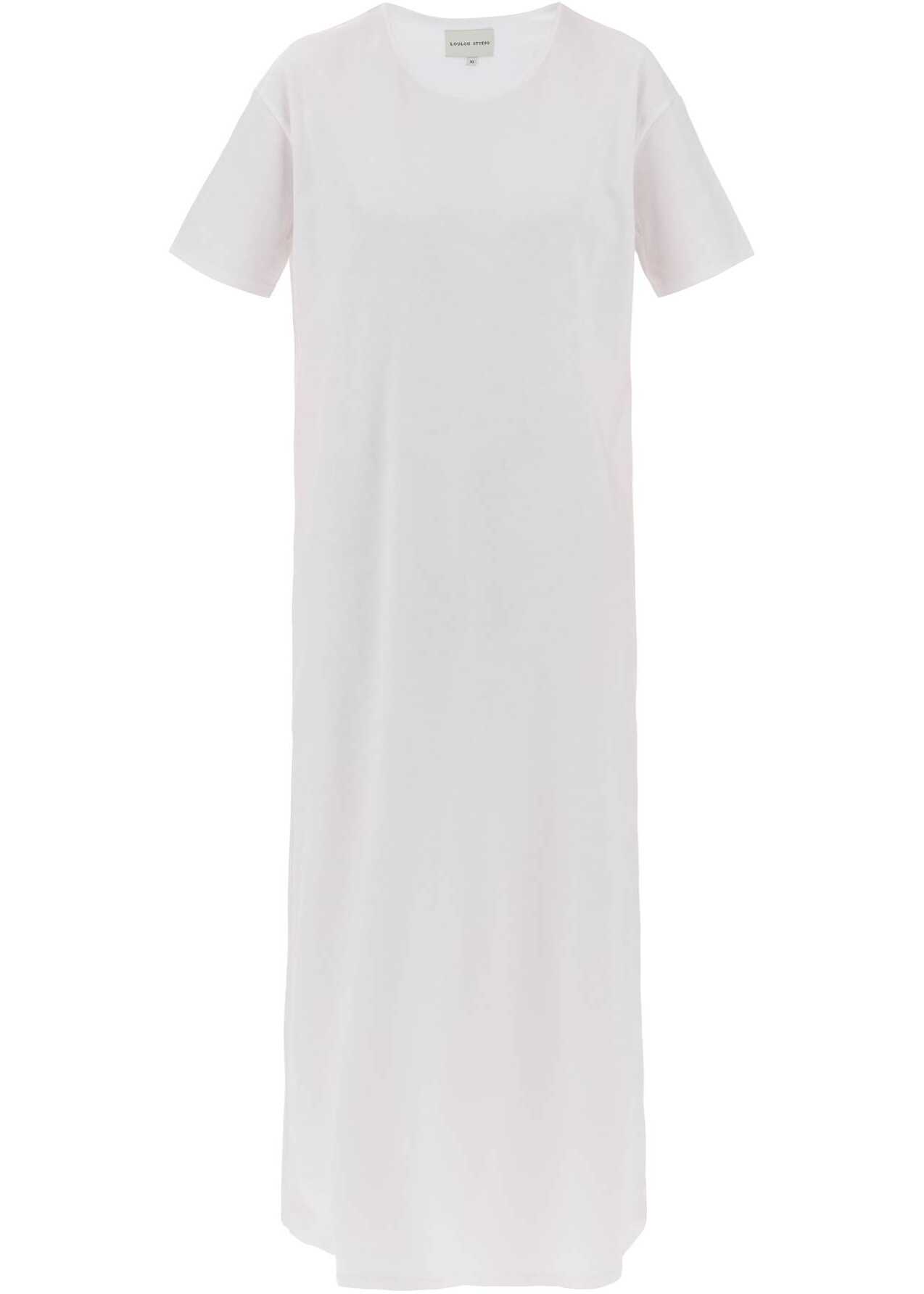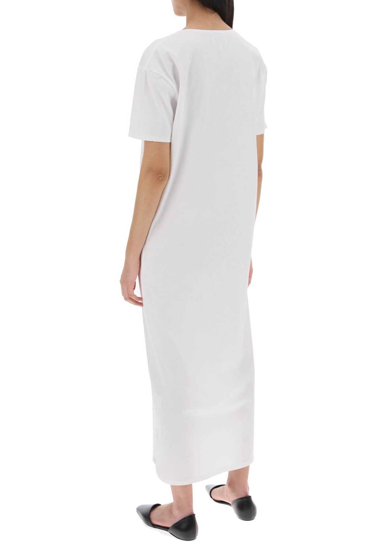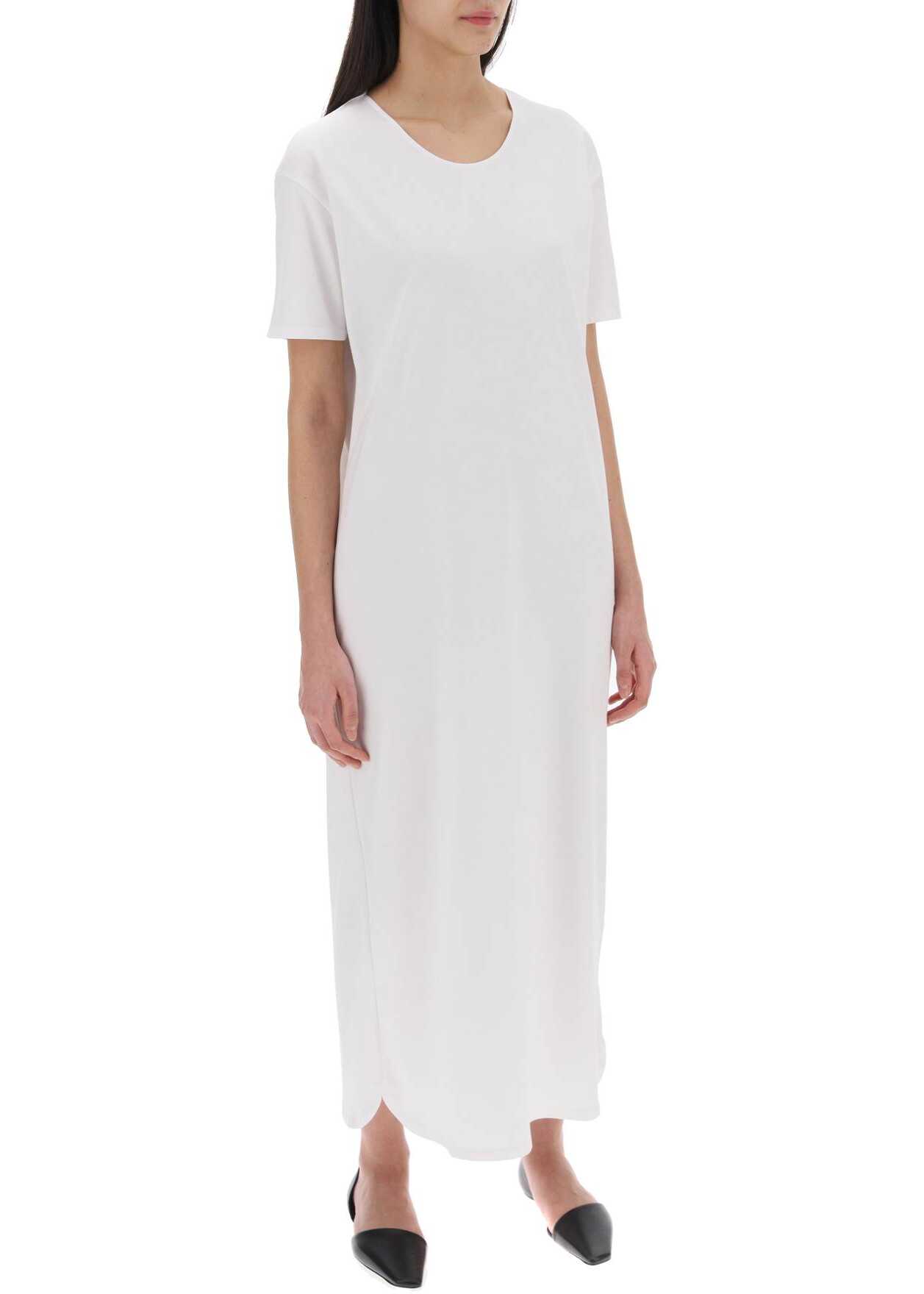 Crafted from organic Pima cotton jersey, the Arue long dress by Loulou Studio features a T-shirt style design with a round neckline and short sleeves. The straight and relaxed fit with dropped shoulders is finished with rounded slits at the hem. The model is 177 cm tall and wears size XS.