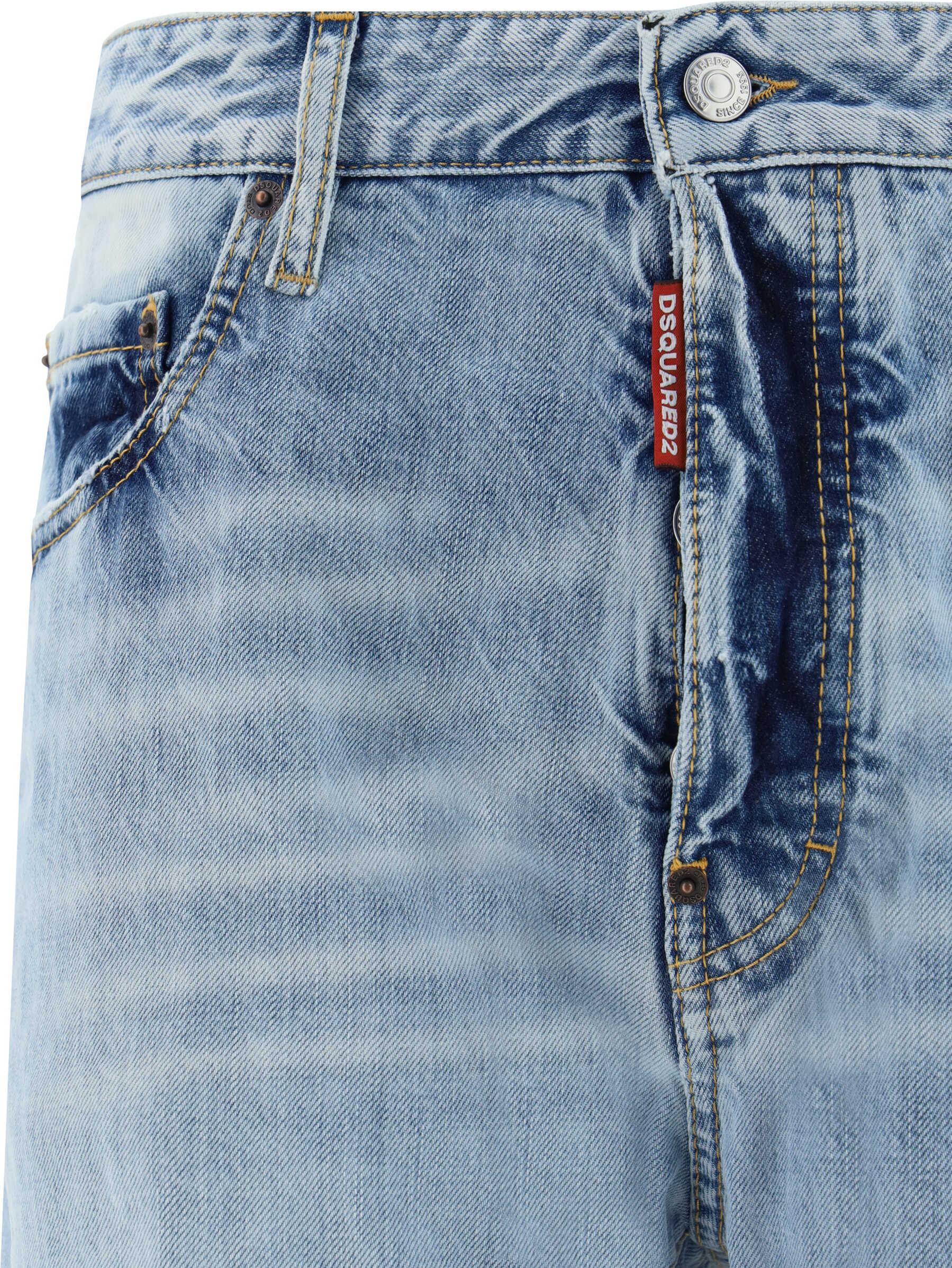 Cotton Jeans by Dsquared2, five-pocket straight style, front button closure, front button closure, belt loops for waistband, iconic leather patch with brand signature pressure-printed applique on back, worn effect design.
