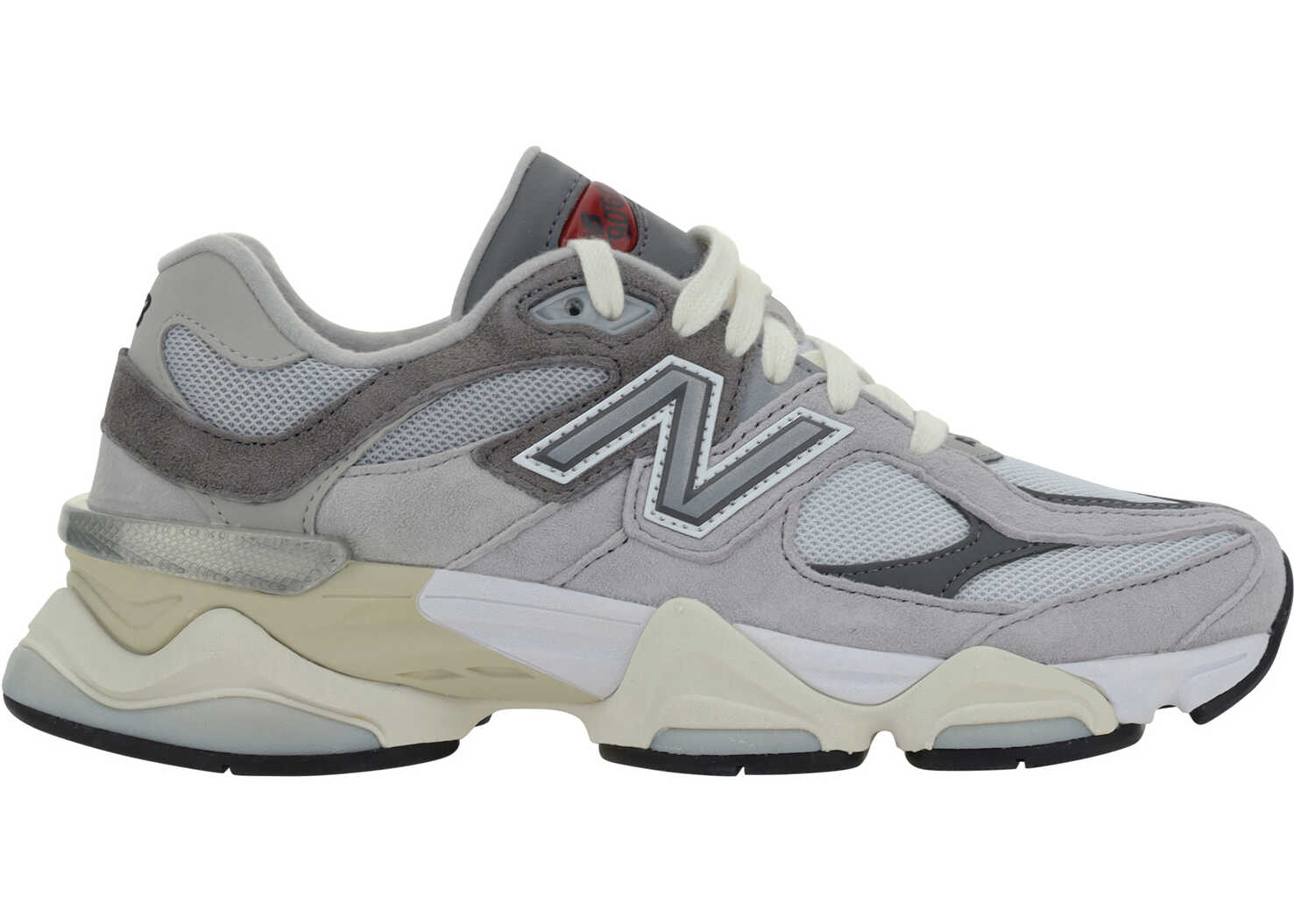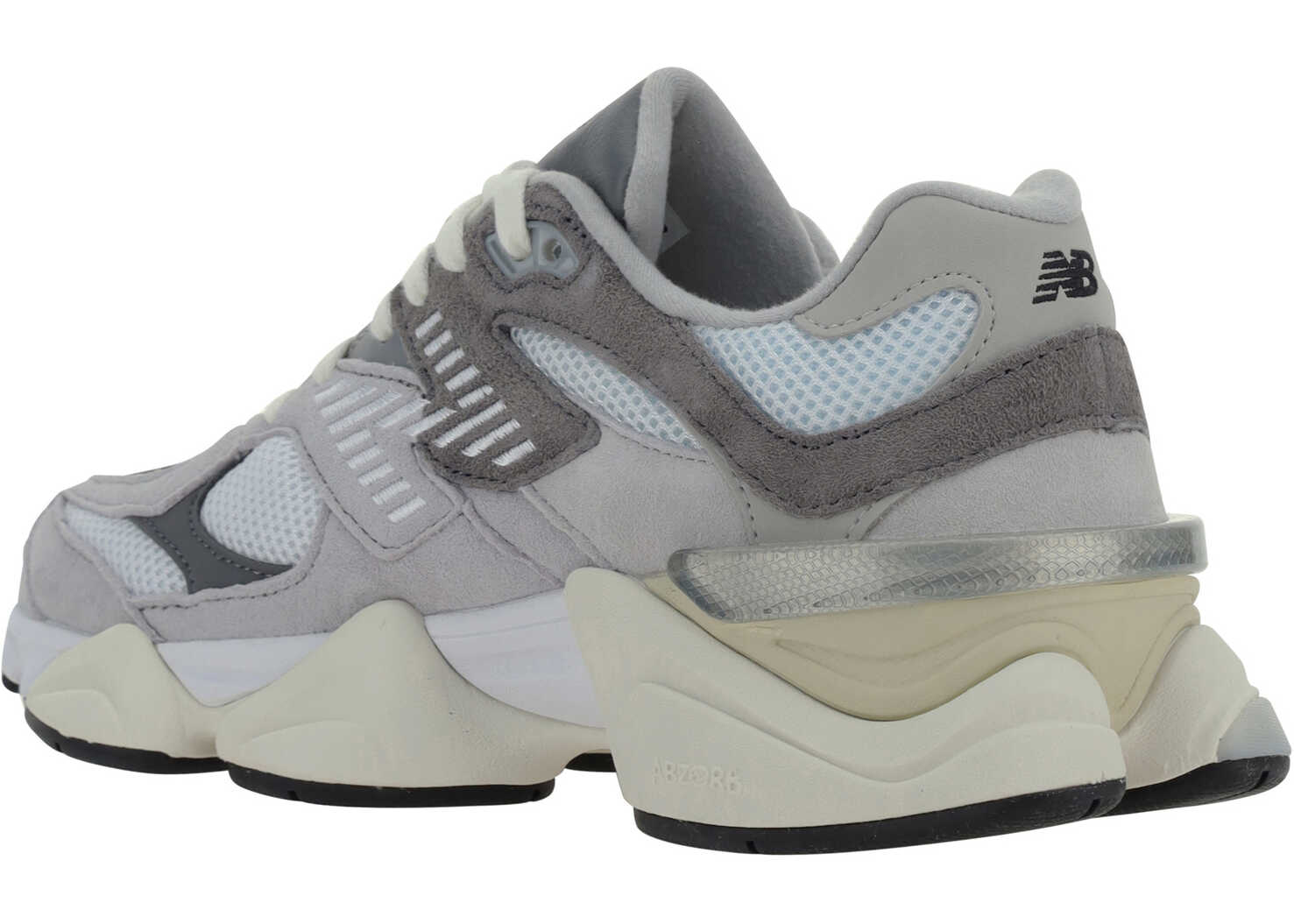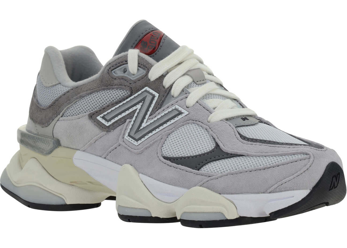 9060 Sneakers by New Balance, mesh upper with suede detailing, lace-up front closure, extended toe on front, raised and reinforced rubber sole, iconic contrasting brand monogram on side panels, contrasting logoed front tab.