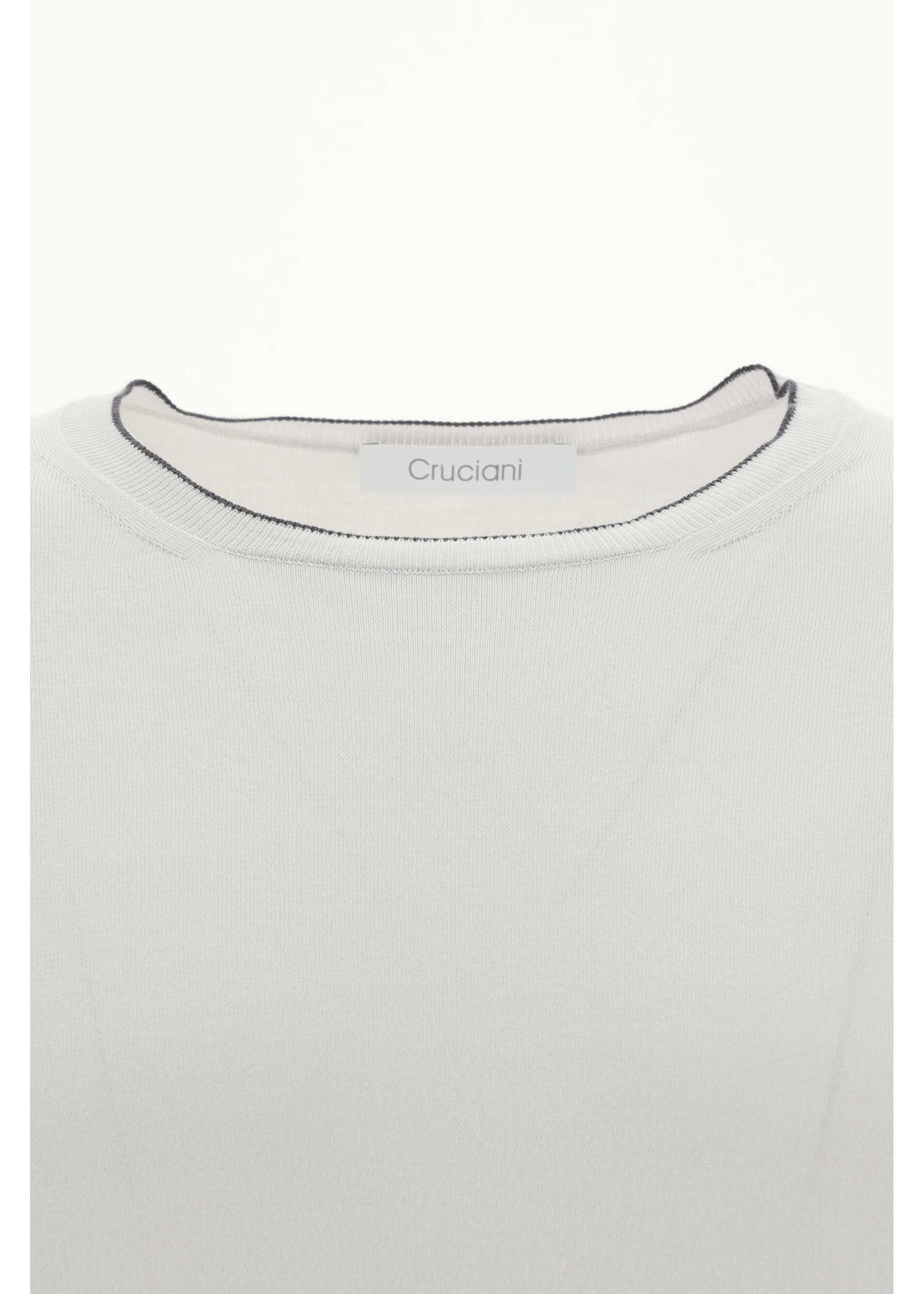 Cotton Sweater by Cruciani, contrast ribbed crew neck, high ribbed hem, contrast ribbed cuffs, monochrome pattern, regular fit.