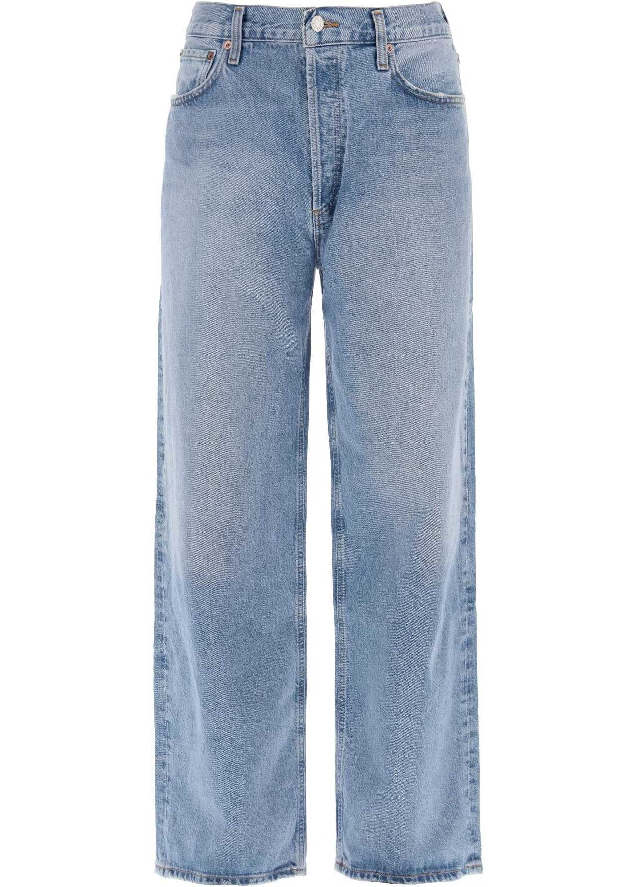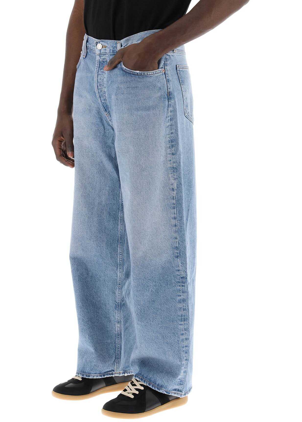 The Low Slung Baggy jeans by Agolde are made of organic and recycled cotton denim and lyocell, with distressed finishes. This straight and wide cut model has a classic five-pocket construction complete with belt loops and button fly. The model is 187 cm tall and wears size 31.