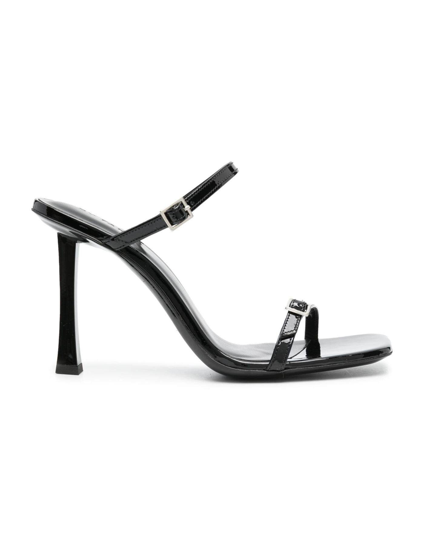 Set atop a 100mm sculpted heel, the Flick sandals from BY FAR are made from black leather and boast the brand's signature square toe. Equal parts refined and contemporary, they are finished with two adjustable straps for a versatile feel.