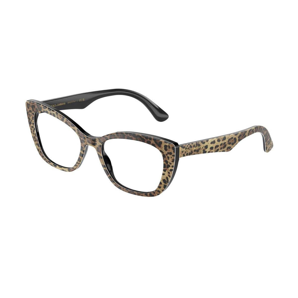 This prescription eyeglass has a soft cat-eye shape for a modern, contemporary look inspired by an iconic Dolce&Gabbana shape. The temples feature a silver or gold hot foil Dolce&Gabbana logo and a matching metal hinge detail.