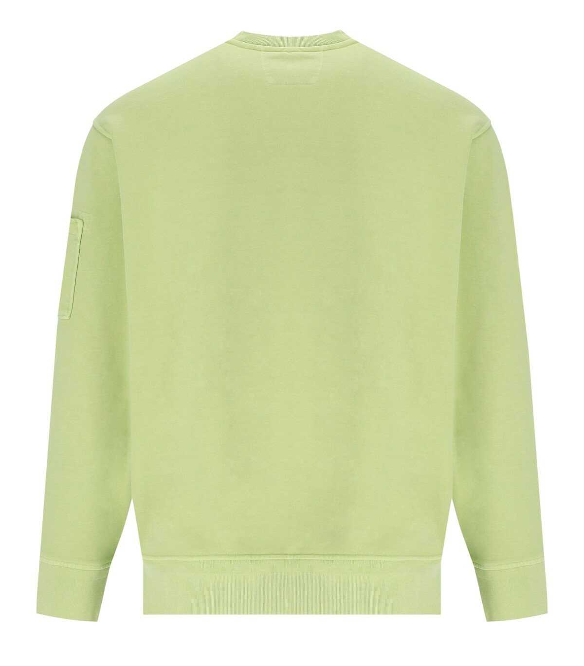 Diagonal Fleece sweatshirt by C.P. Company made of light green cotton, with the iconic C.P. lens on the left sleeve, ribbed collar, cuffs and hem.