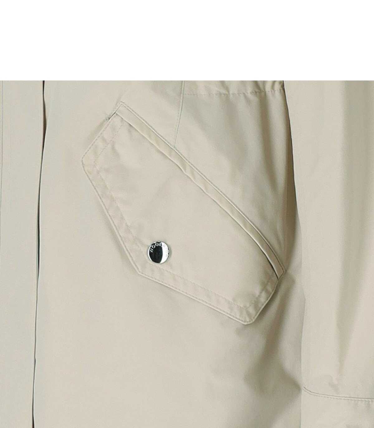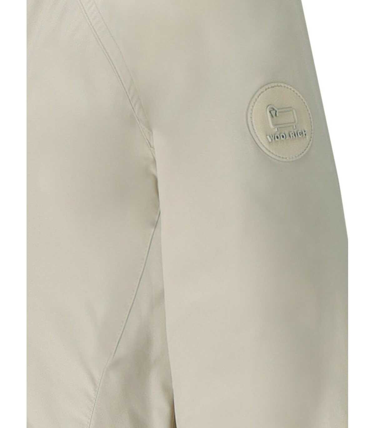 Long Summer Parka by Woolrich made of water-repellent and wind-resistant Urban Touch fabric, in beige tones. It features pockets with flaps on the front, internal drawstring to enhance the waistline, and a slit on the back. Zip and button closure, tone-on-tone logo patch on the sleeve. Comfortable fit.